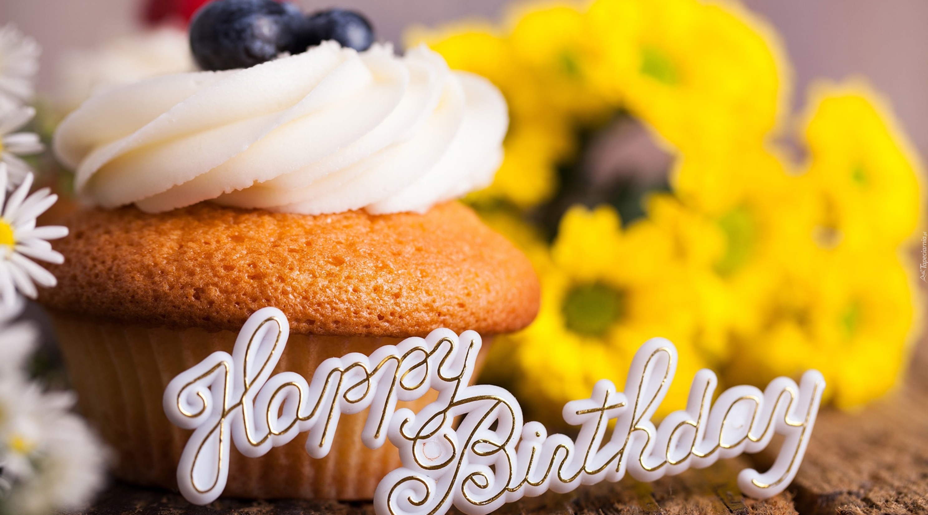 Edytor tapety: Babeczka, Urodziny, Kwiaty