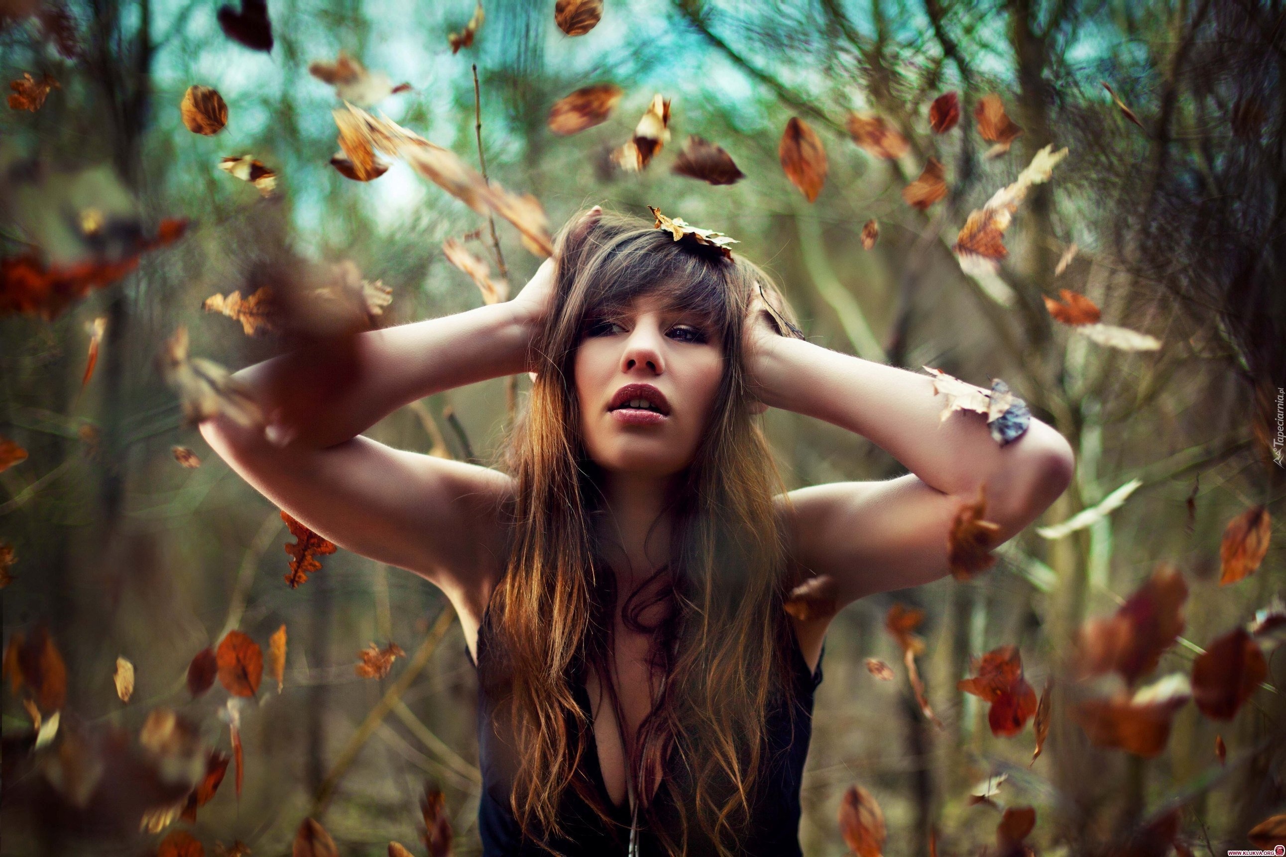 Edytor tapety: Zmartwiona, Kobieta, Jesienne, Liście