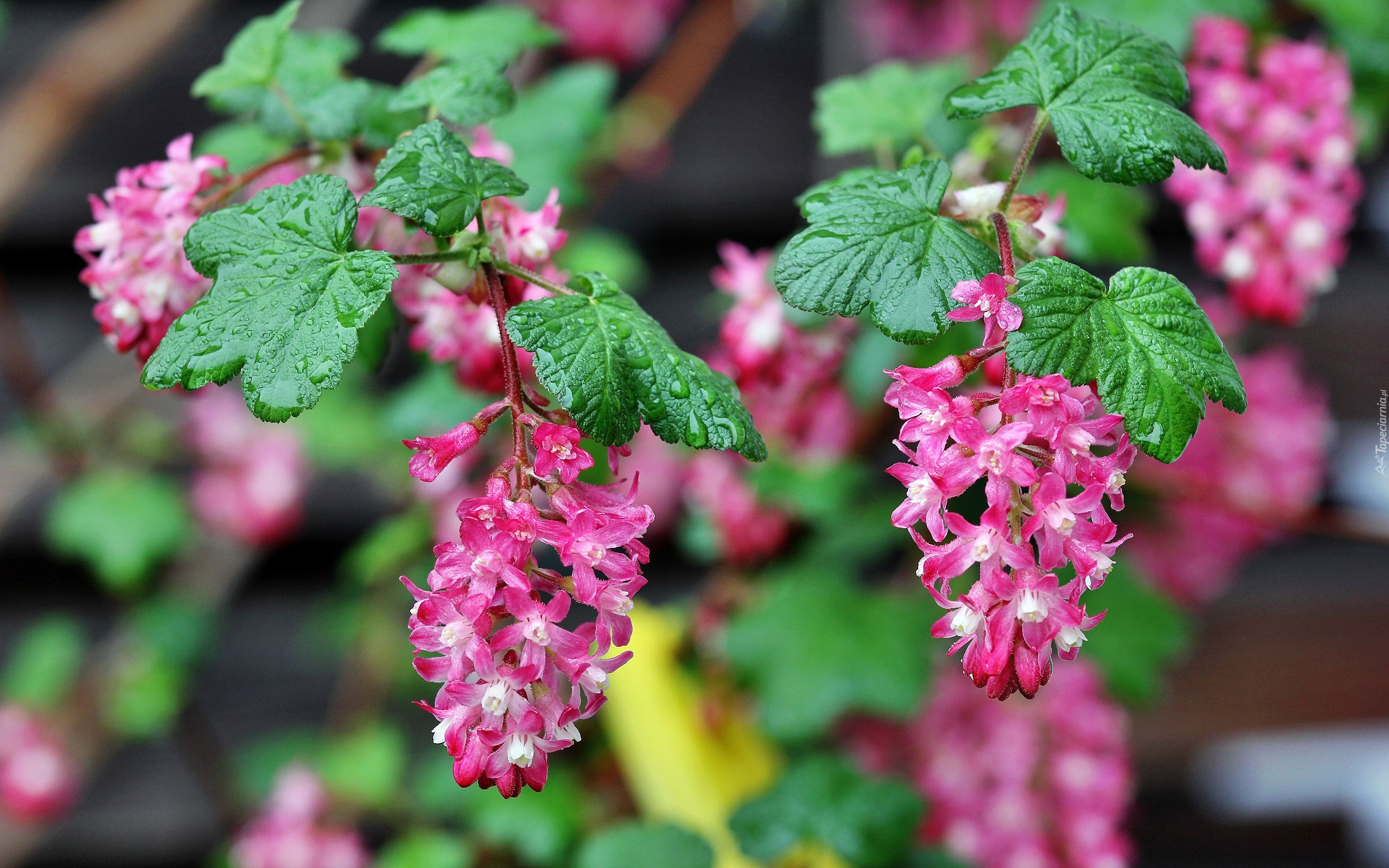 Edytor tapety: Porzeczka krwista, Różowe, Kwiaty, Krople
