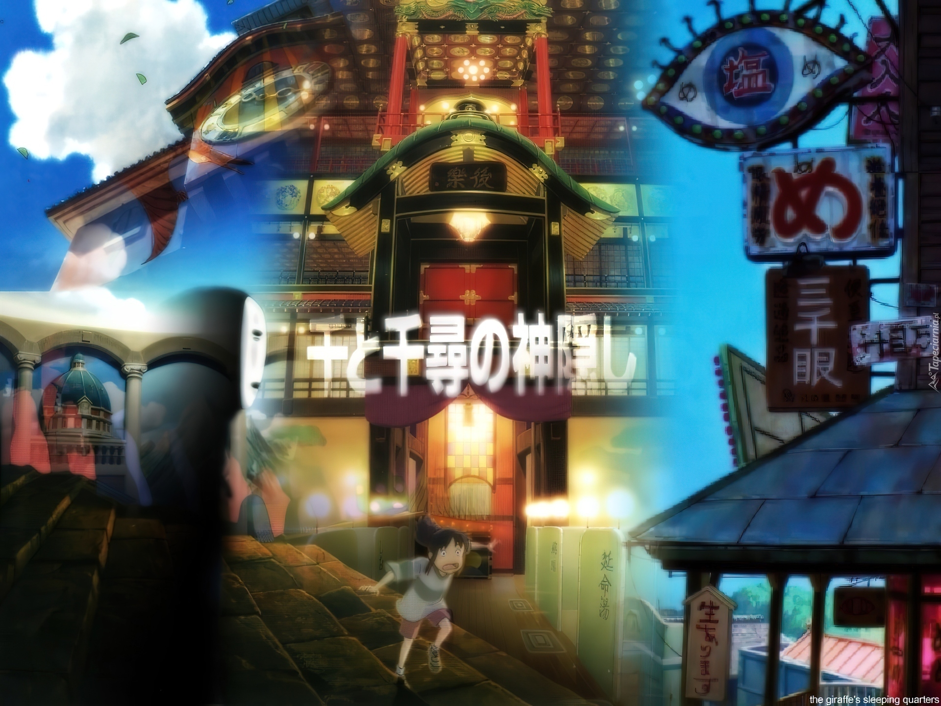 Edytor tapety: Spirited Away, miasto, napisy