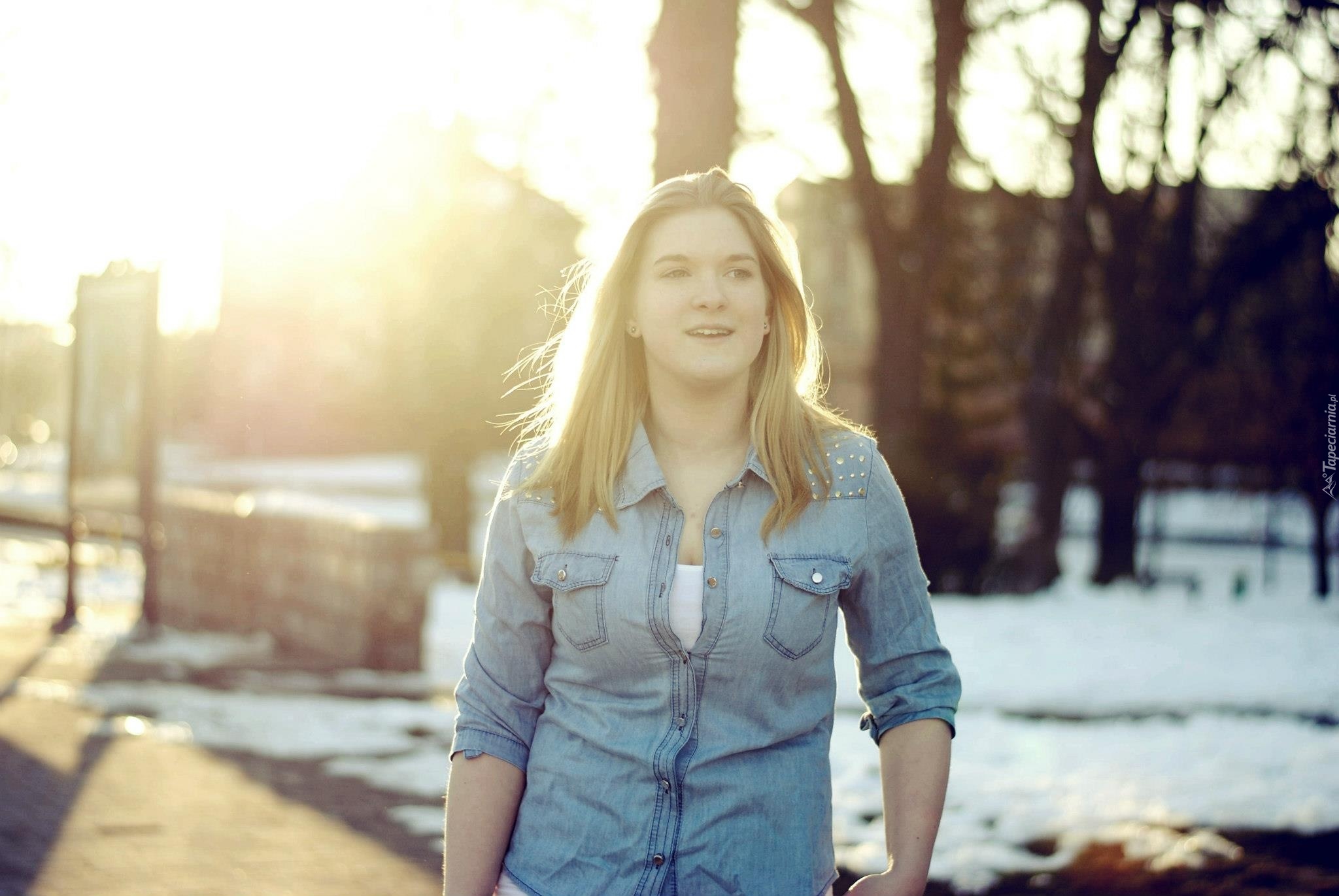 Edytor tapety: Kobieta, Blondynka, Dżinsowa, Koszula