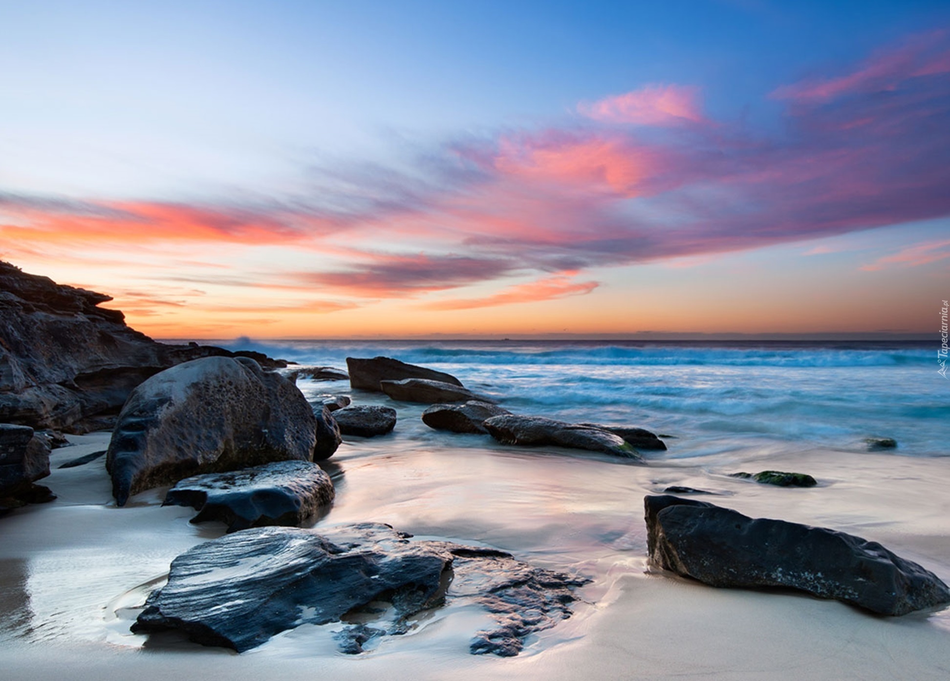 Edytor tapety: Plaża, Chmury, Skały, Piasek, Woda