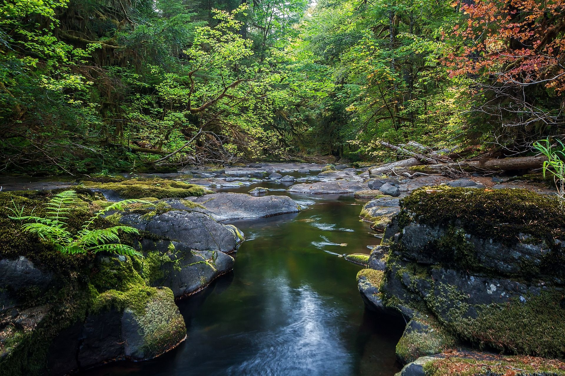 Edytor tapety: Las, Rzeka, Kamienie