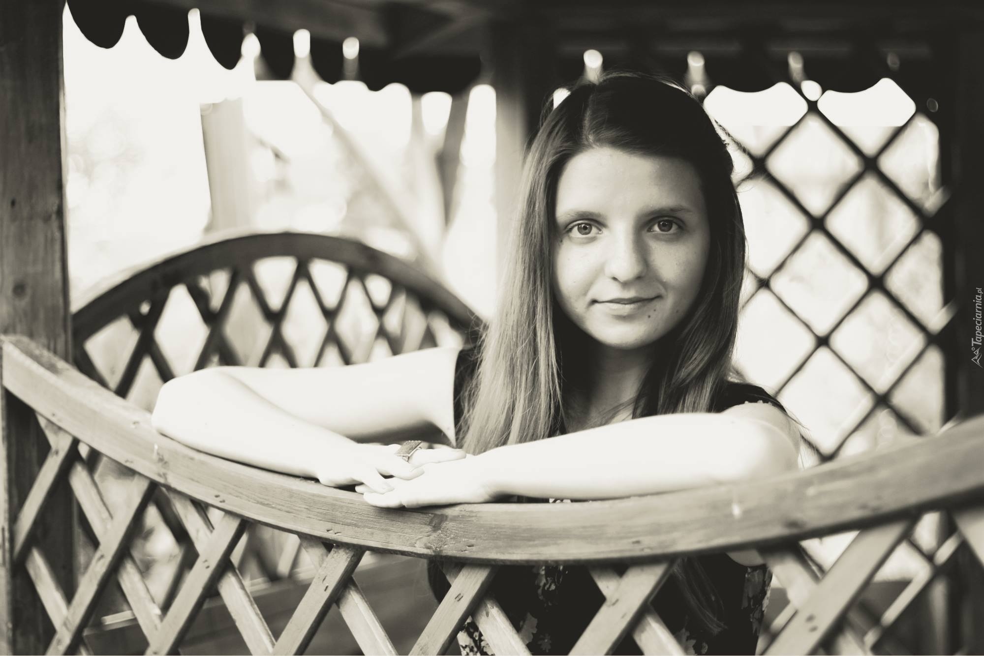 Edytor tapety: Uśmiechnięta, Kobieta, Taras