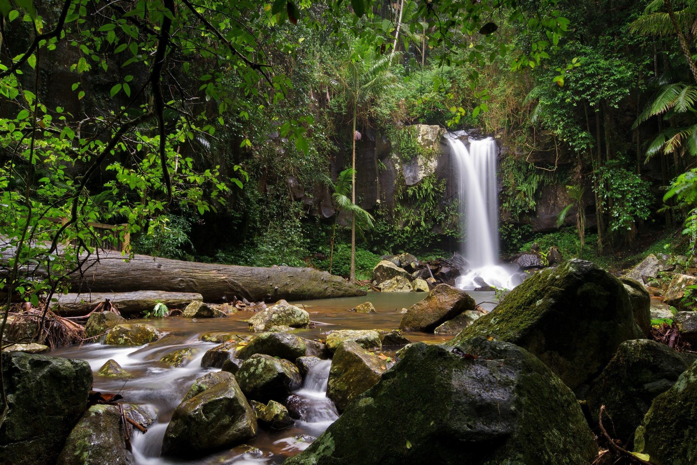 Edytor tapety: Las, Wodospad, Kamienie