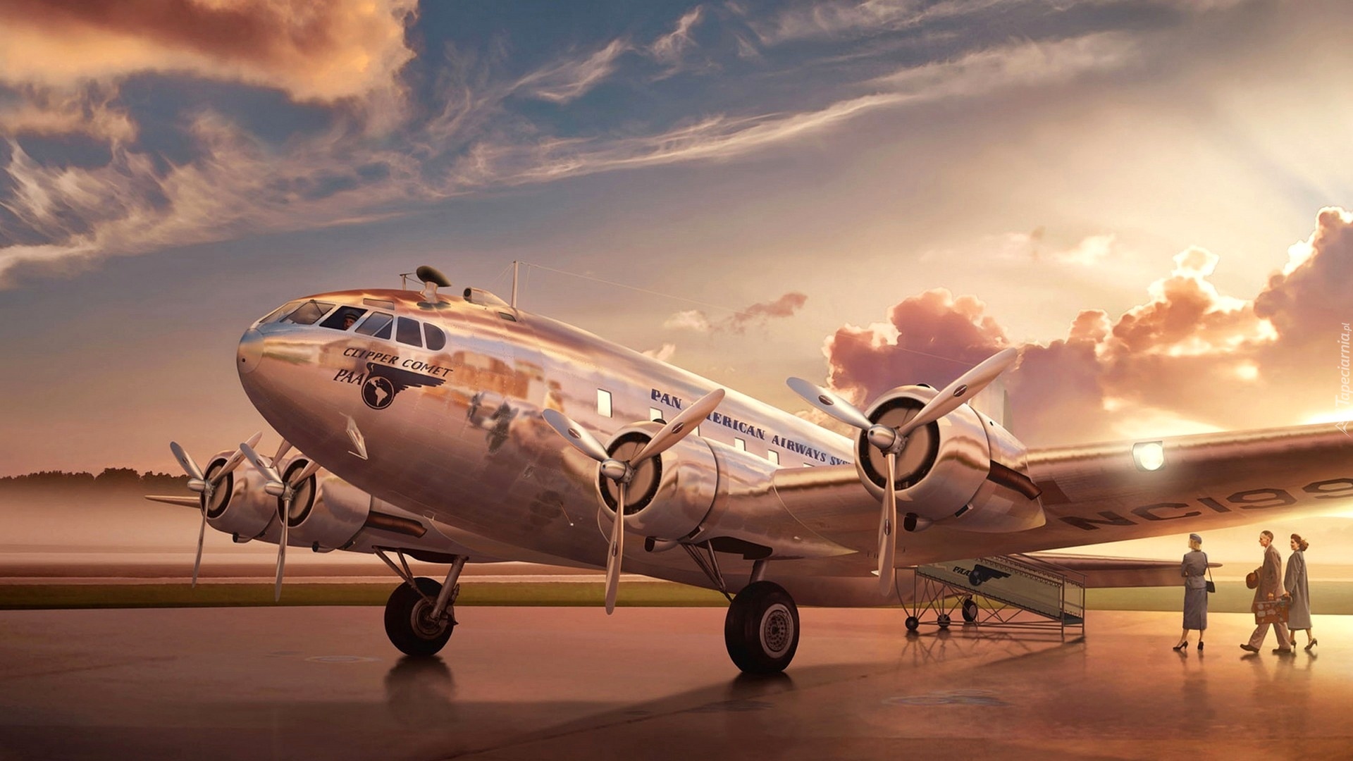 Edytor tapety: Boeing 307, Płyta, Lotniska, Osoby, Chmury