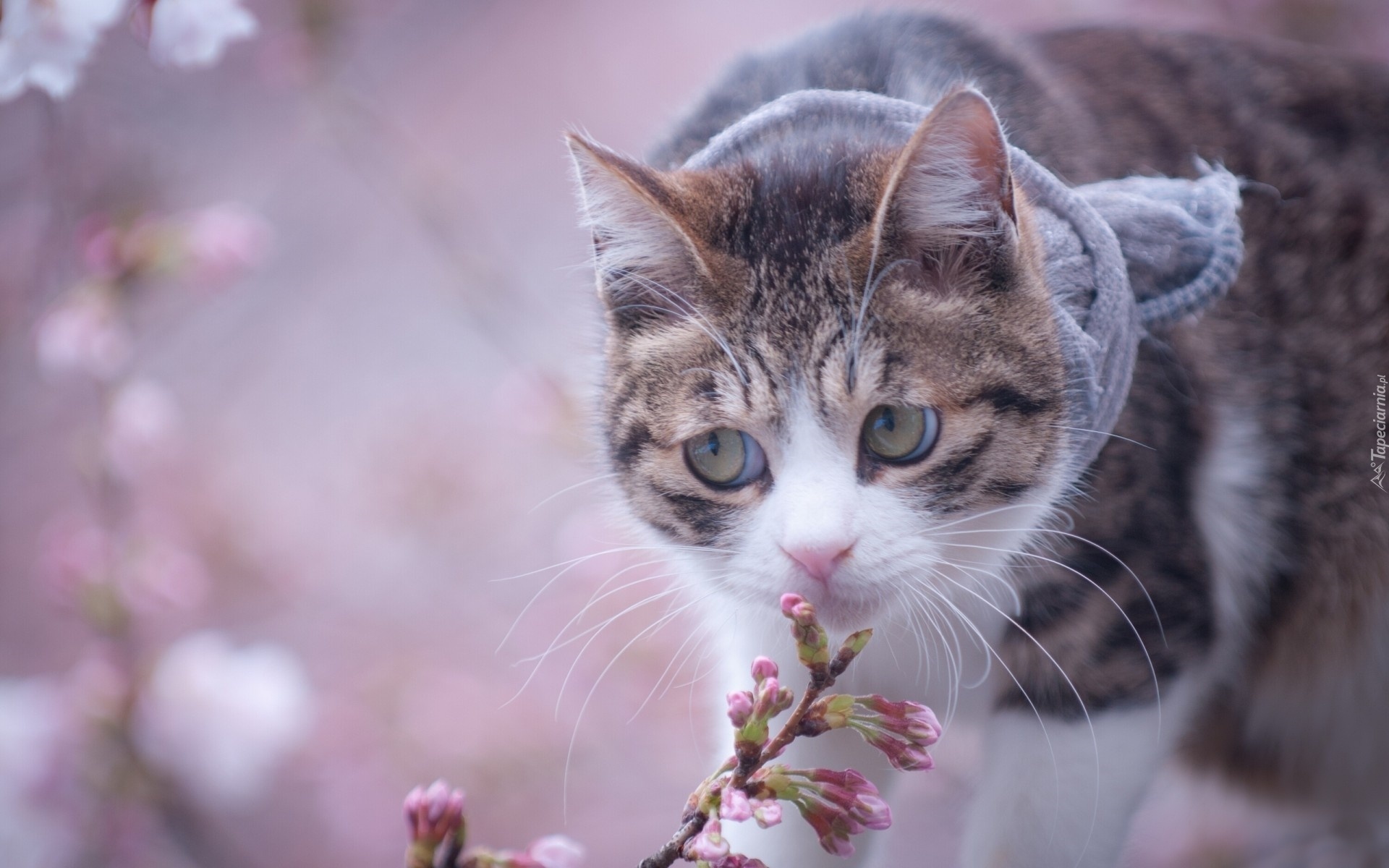 Edytor tapety: Kot, Szalik, Gałązka, Kwiat