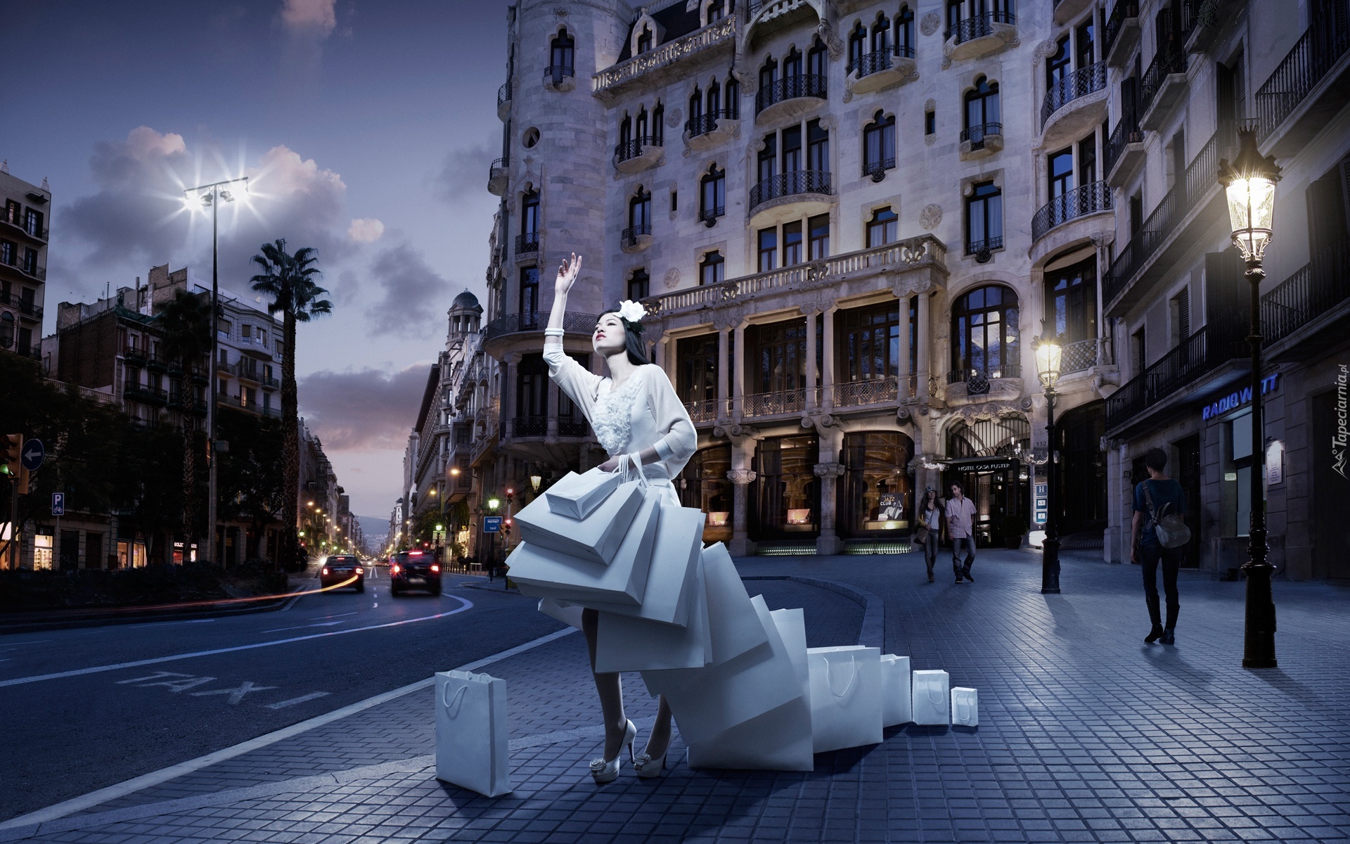 Edytor tapety: Miasto, Domy, Ulica, Kobieta, Zakupy