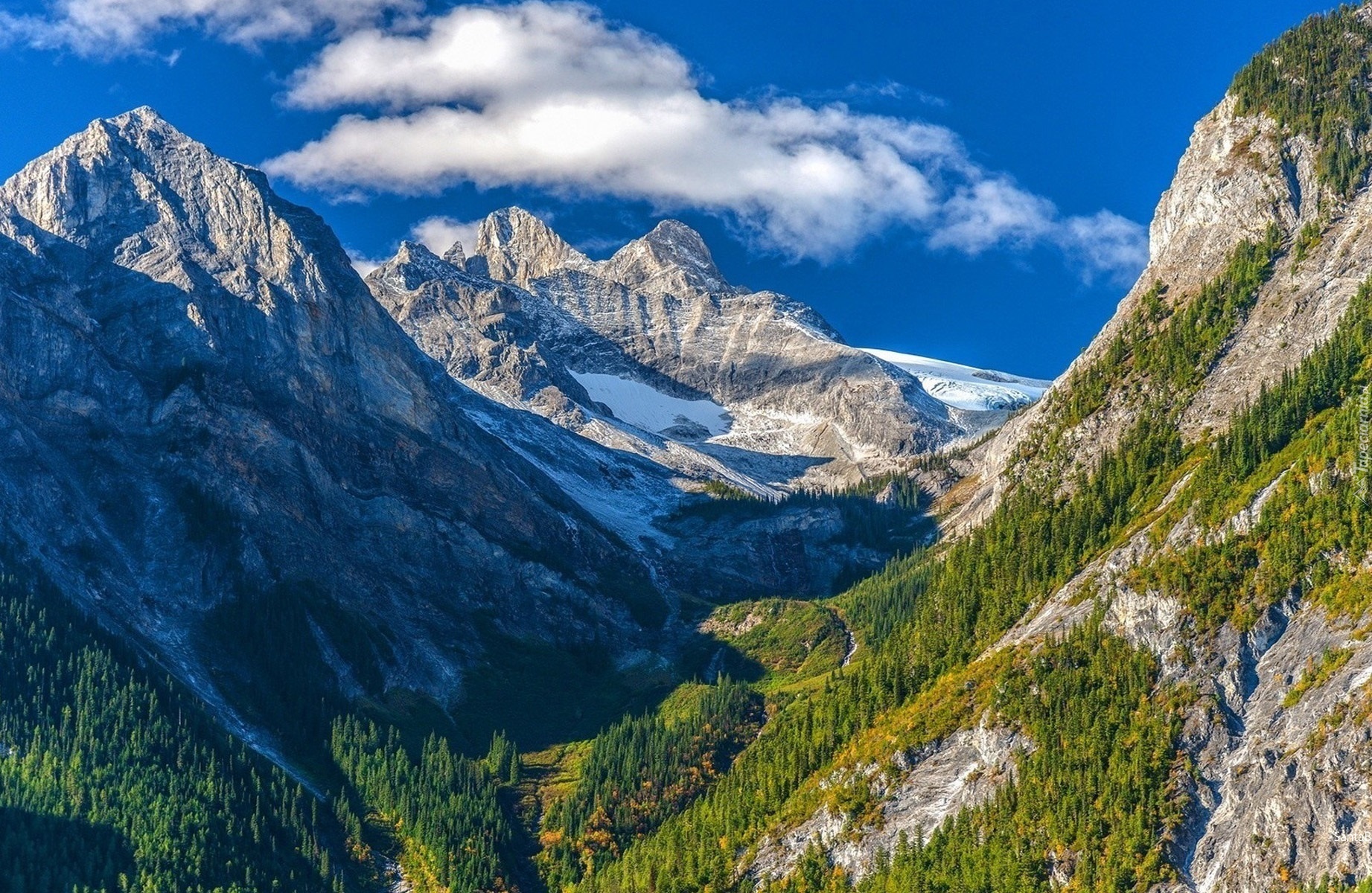 Edytor tapety: Góry, Chmury, Drzewa