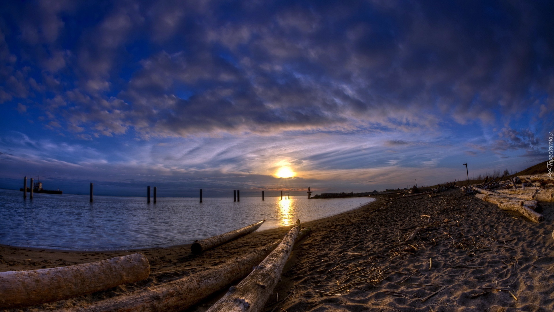 Edytor tapety: Zachód, Słońca, Morze, Filary, Plaża