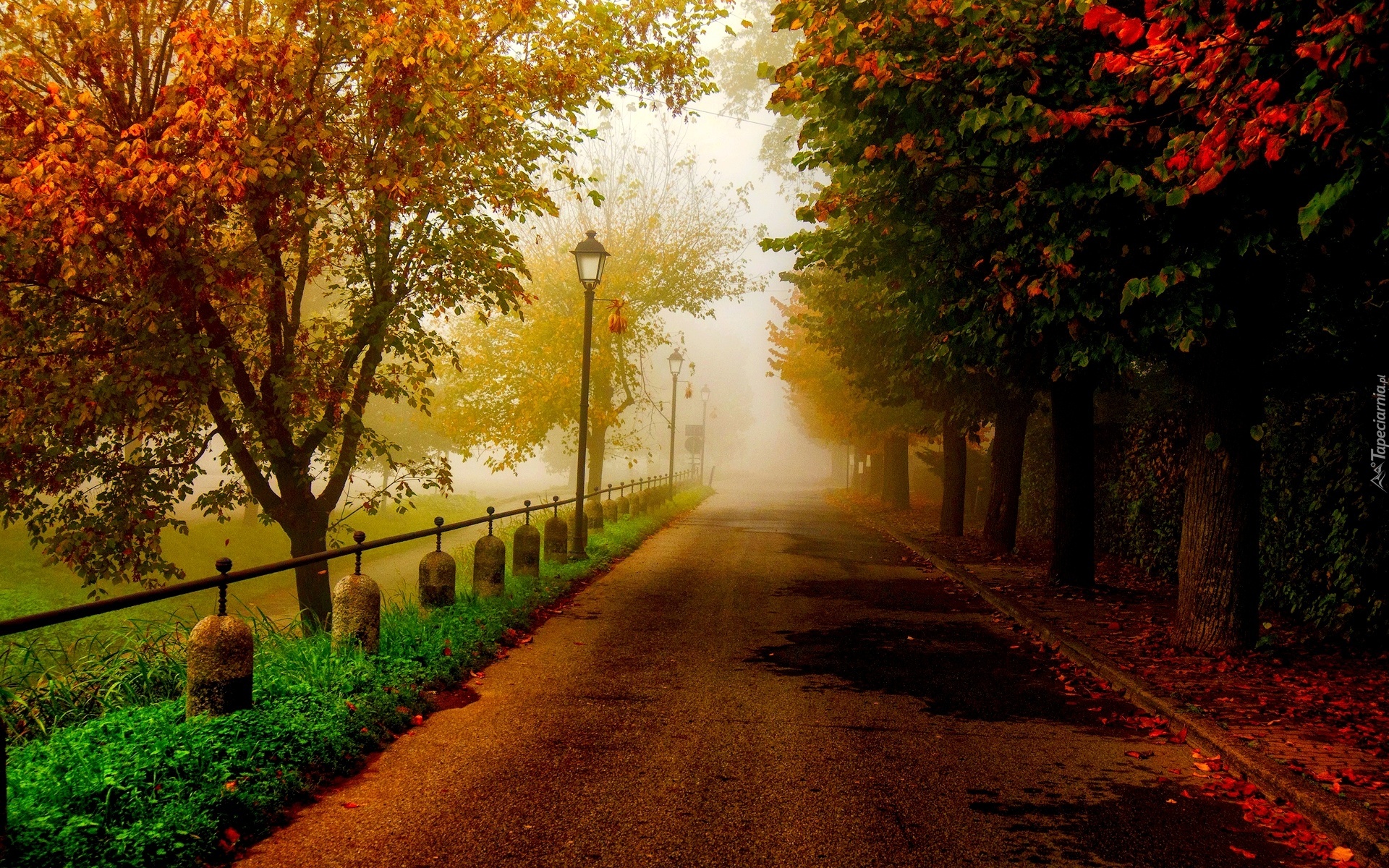 Edytor tapety: Park, Alejka, Latarnia, Drzewa