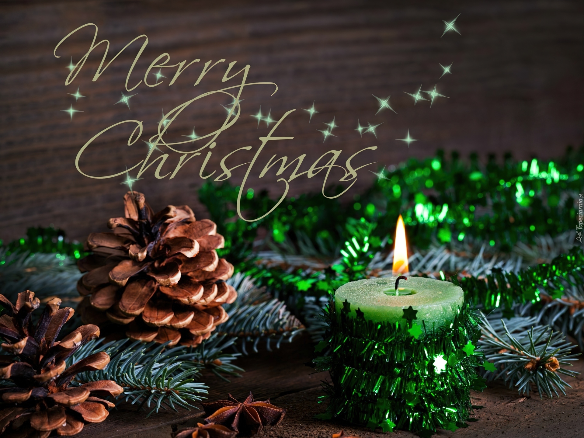 Edytor tapety: Świeca, Szyszki, Gałązki, Dekoracja, Świąteczna