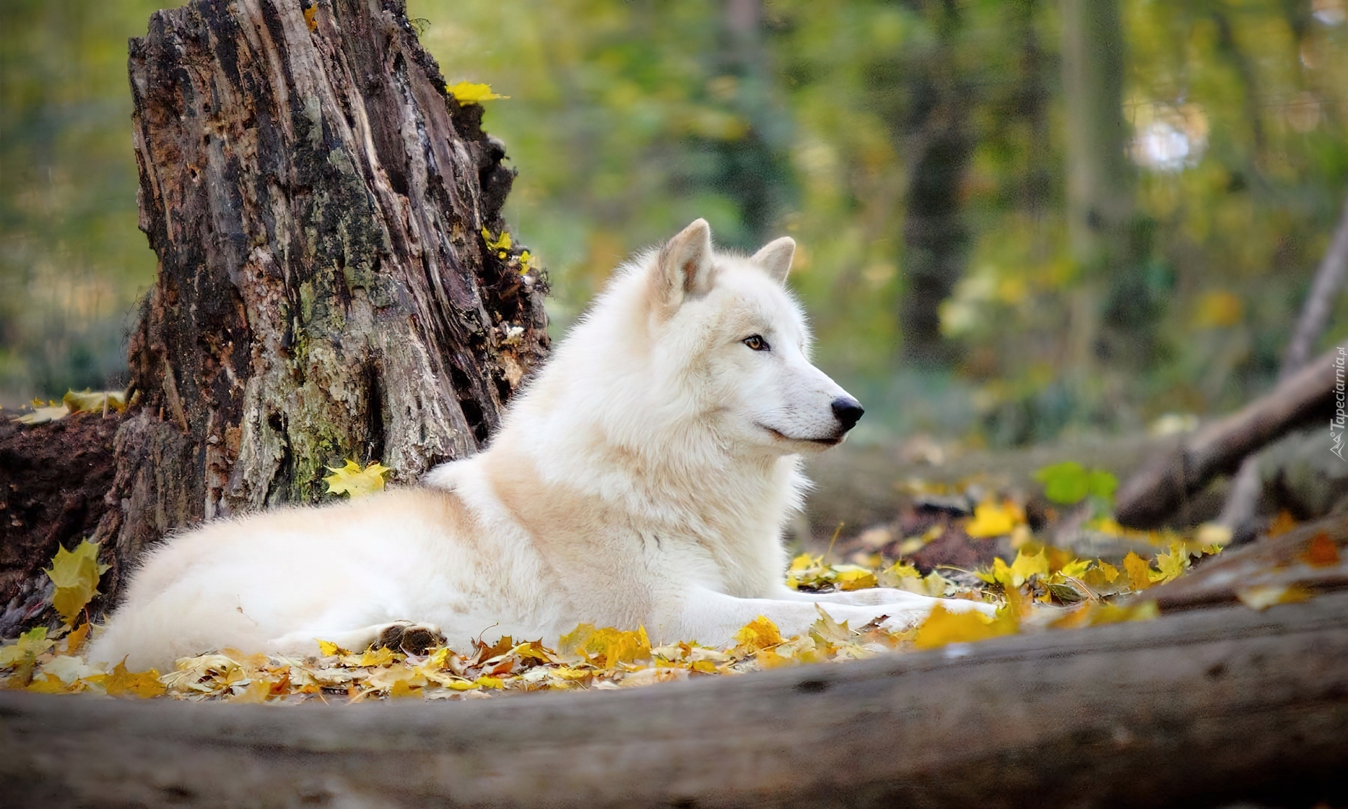 Edytor tapety: Pień, Drzewa, Liście, Jesień, Biały, Pies