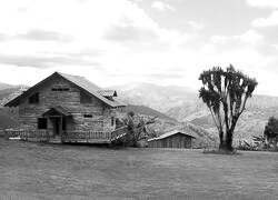 Edytor tapety: Drewniany, Dom, Drzewo, Góry