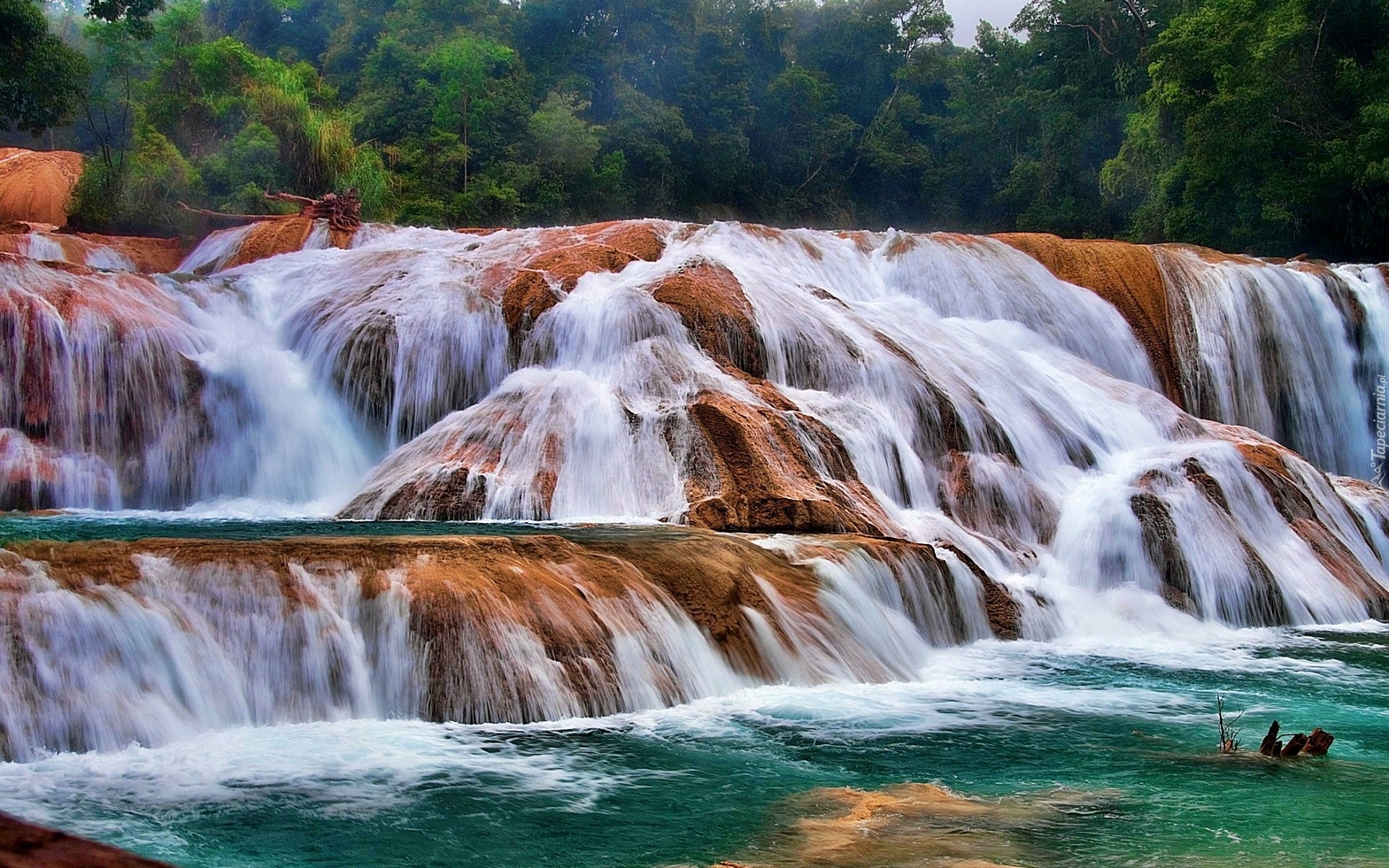Edytor tapety: Wodospad, Agua Azul, Chiapas, Meksyk