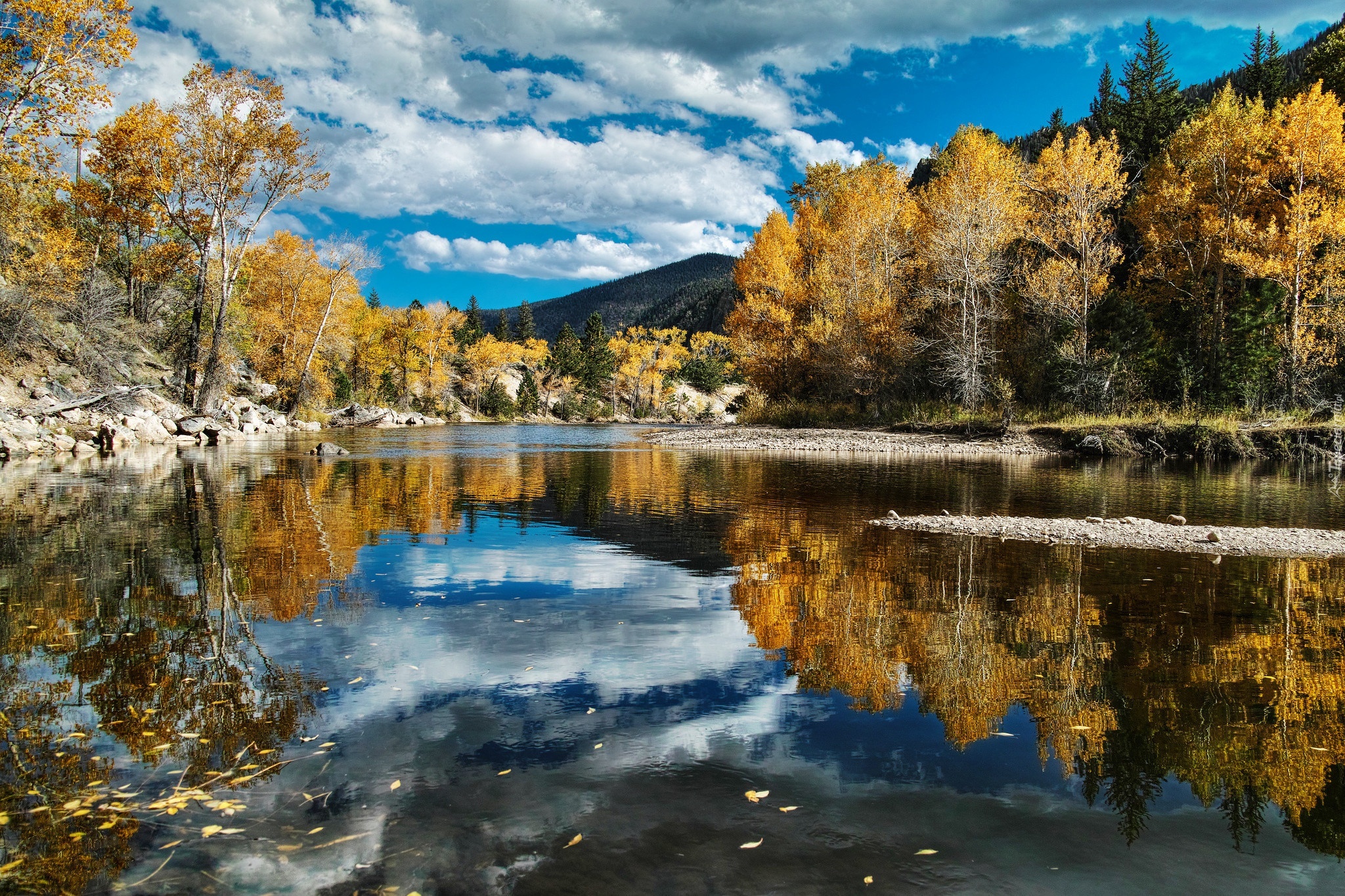 Edytor tapety: Jesień, Rzeka, Las, Odbicie