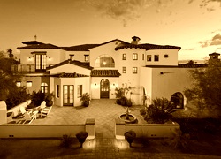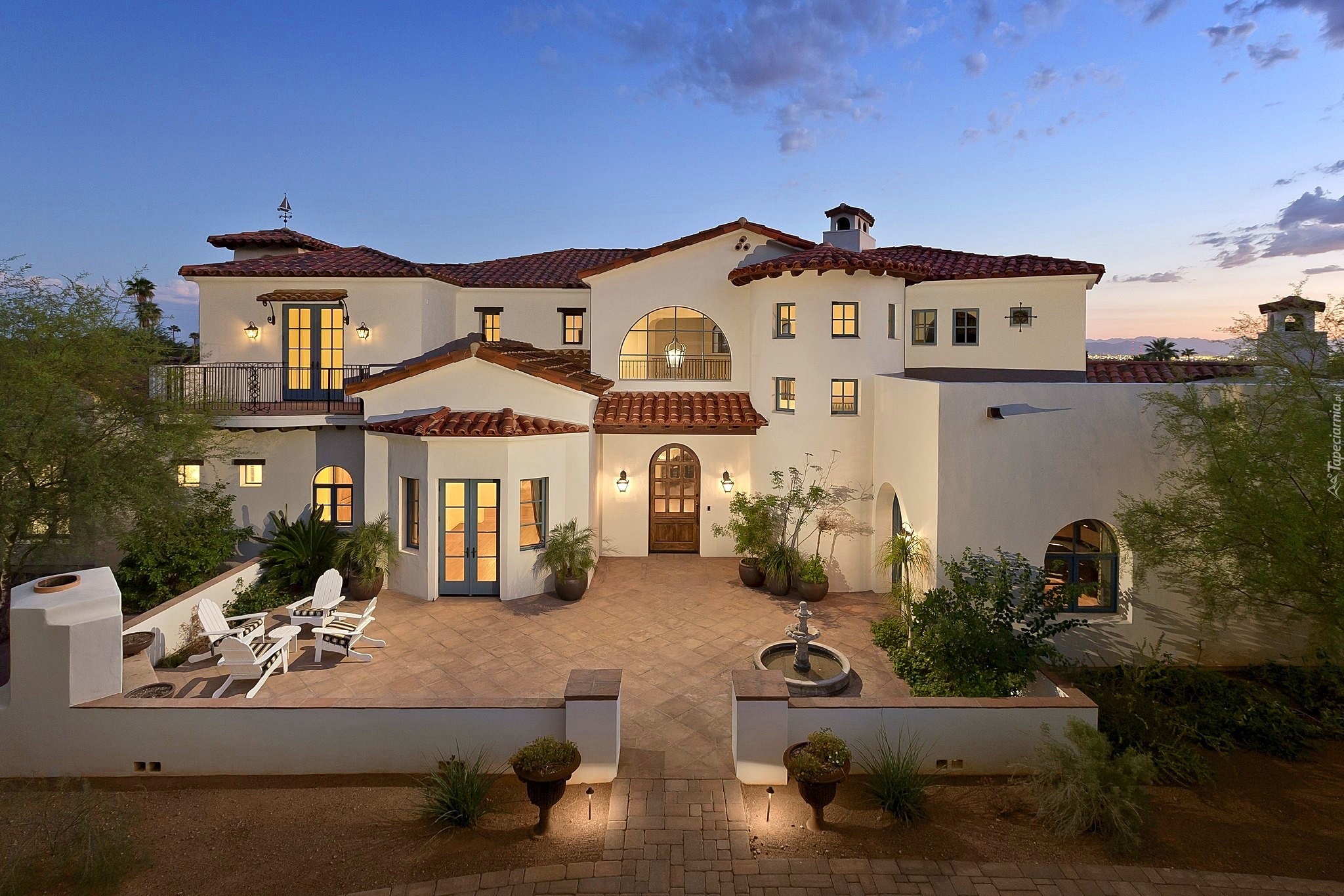 Edytor tapety: Oświetlony, Dom, Willa, Zmierzch