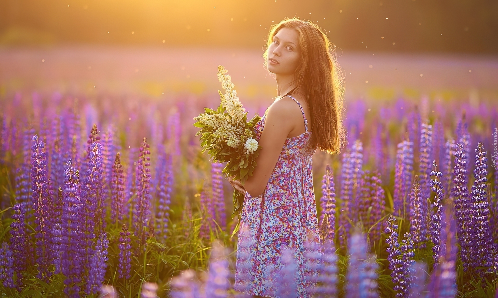 Edytor tapety: Kobieta, Kwiecista, Sukienka, Łubin