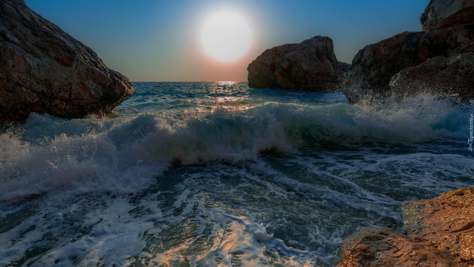 Edytor tapety: Morze, Skały, Fale, Słońce