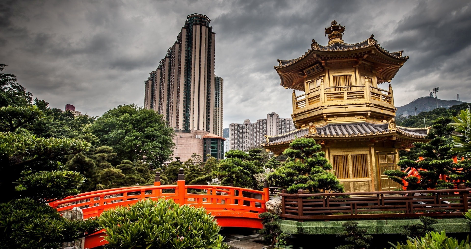 Edytor tapety: Pałacyk, Mostek, Drapacze Chmur, Ogród