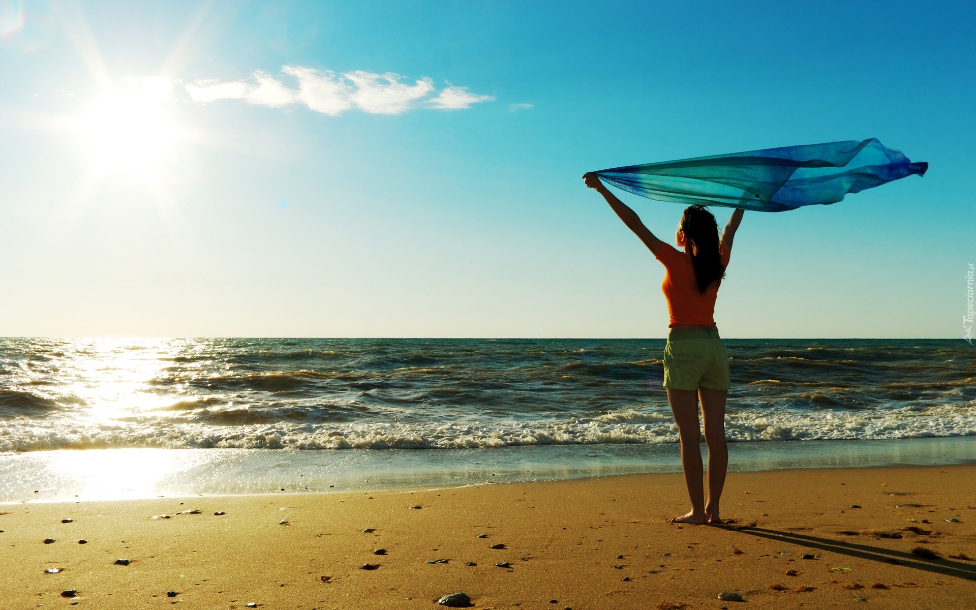 Edytor tapety: Kobieta, Plaża, Morze, Promienie