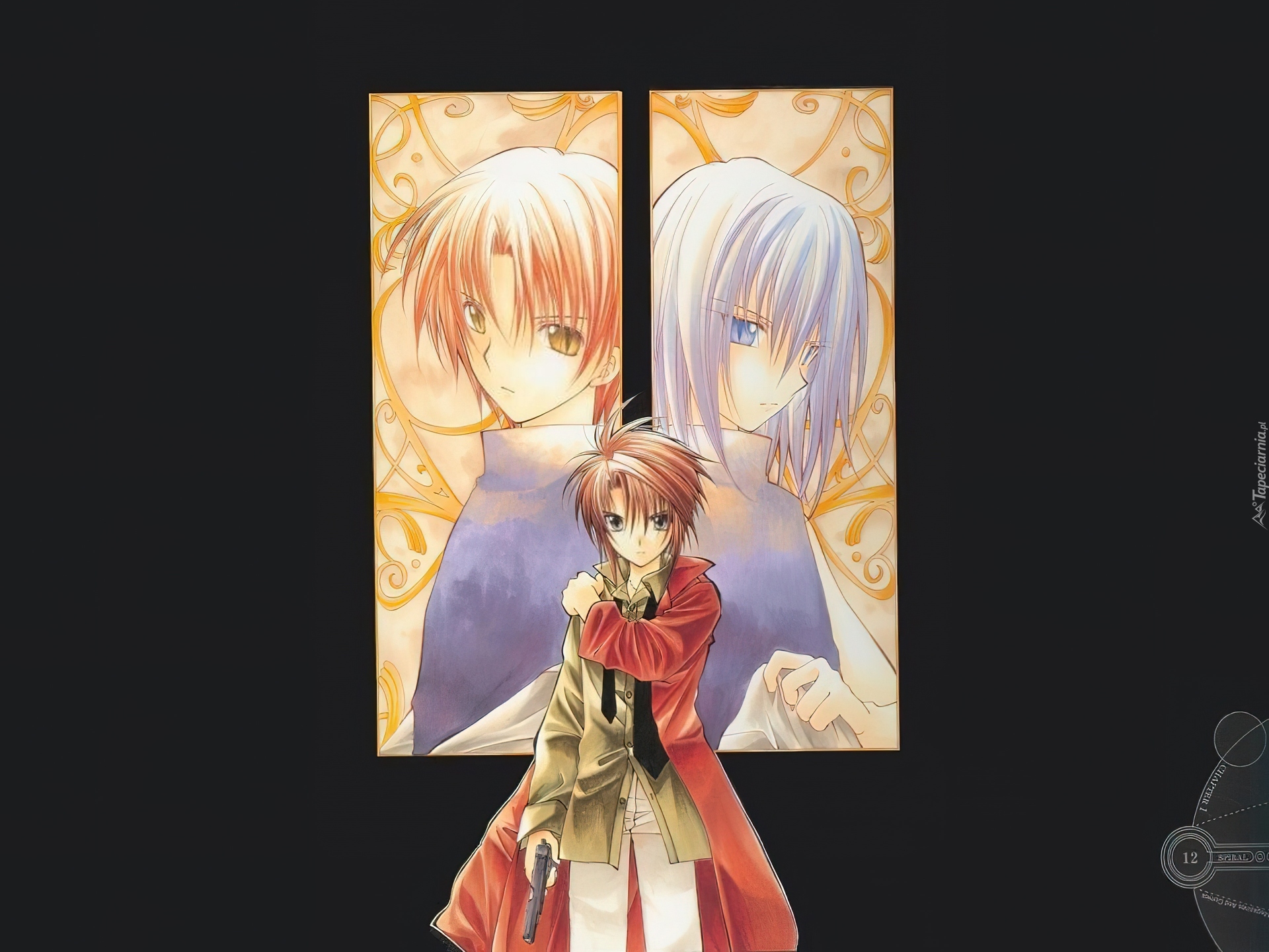 Edytor tapety: Spiral, czerwony płaszcz, pistolet
