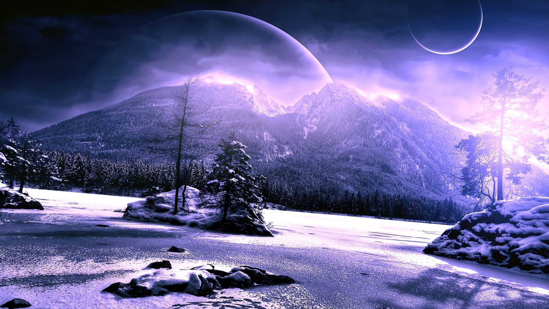 Edytor tapety: Fantasy, Zima, Góry, Planety, Las