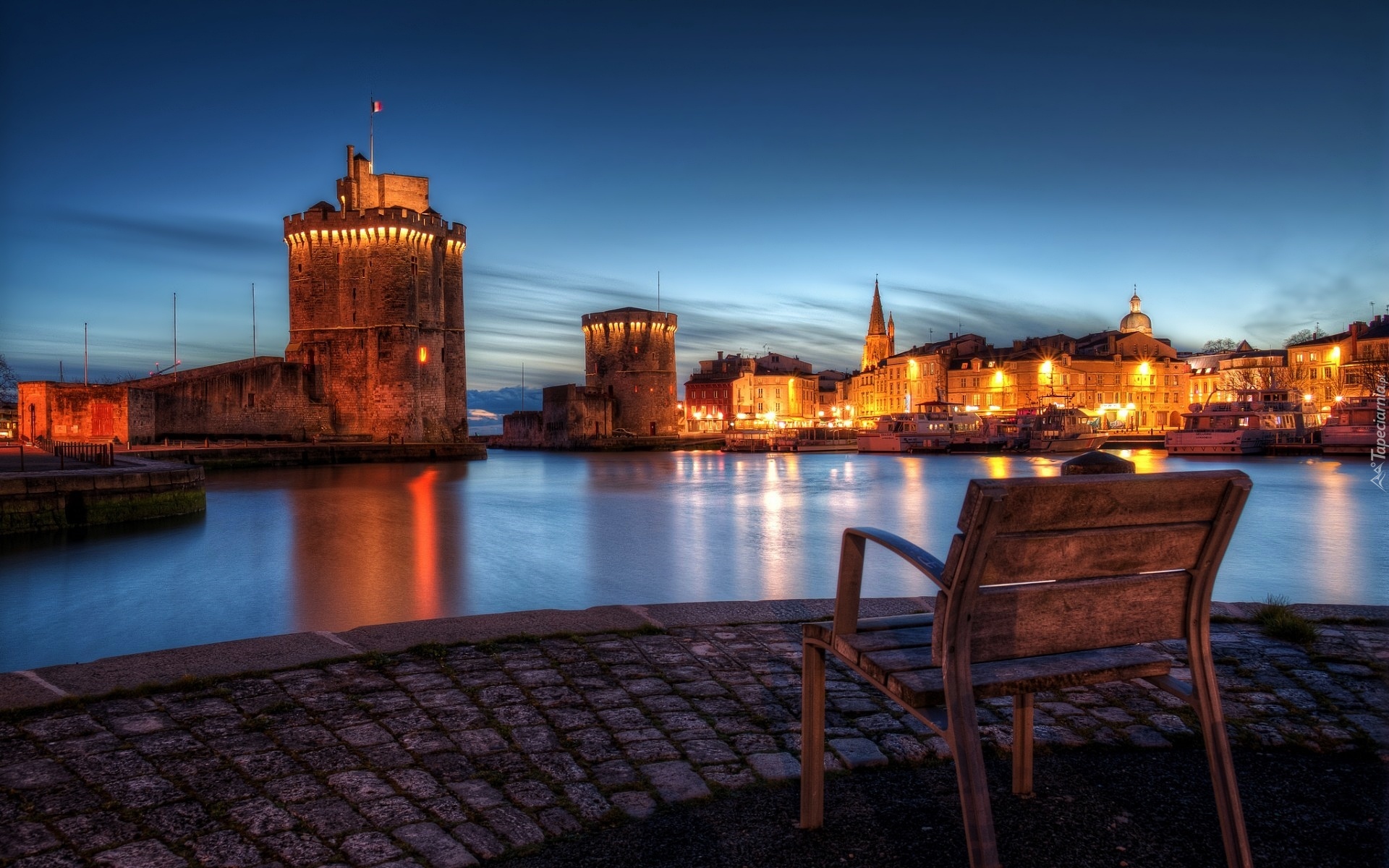 Edytor tapety: Port, Fort, Ławeczka, Noc