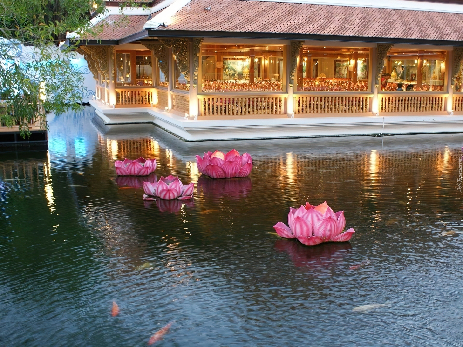 Edytor tapety: Jezioro, Lilie, Wodne, Domek, Odbicie