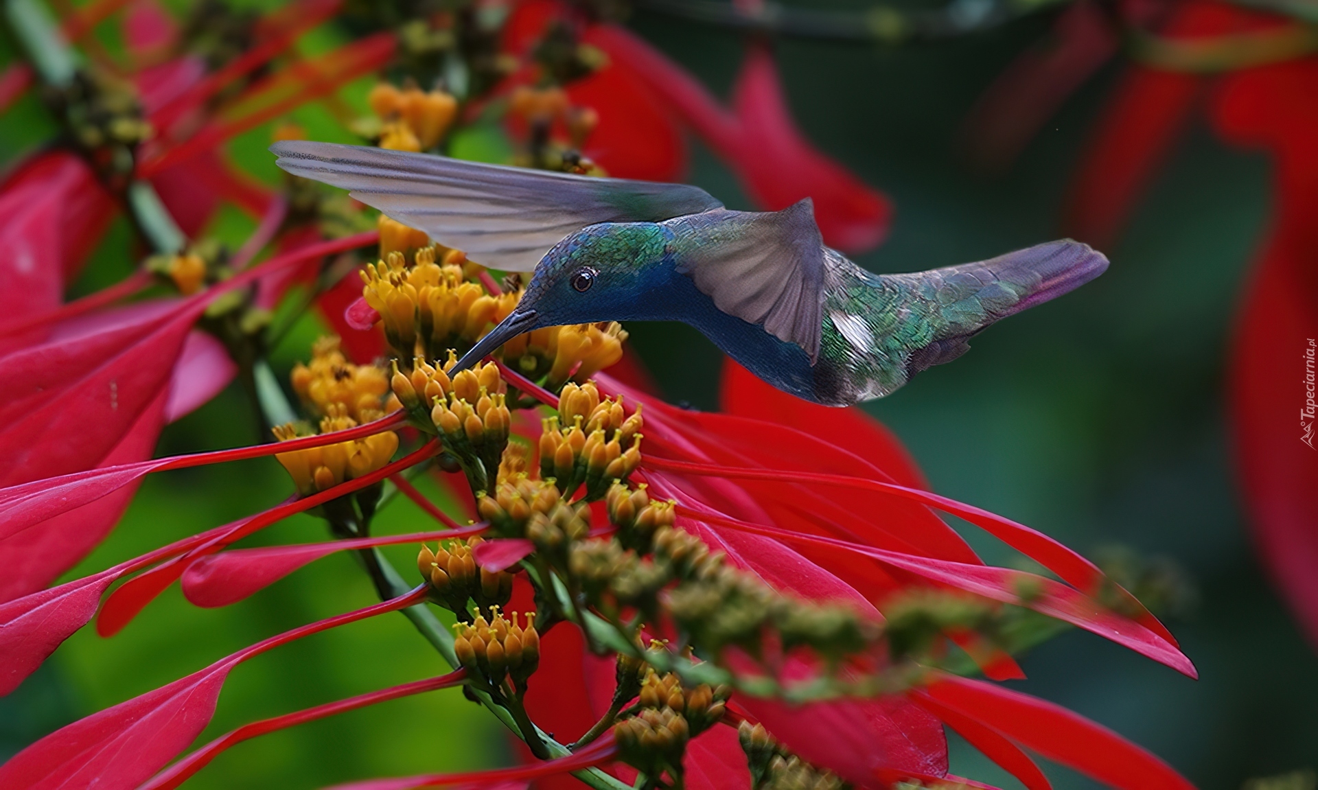 Edytor tapety: Koliber, Ptak, Kwiaty