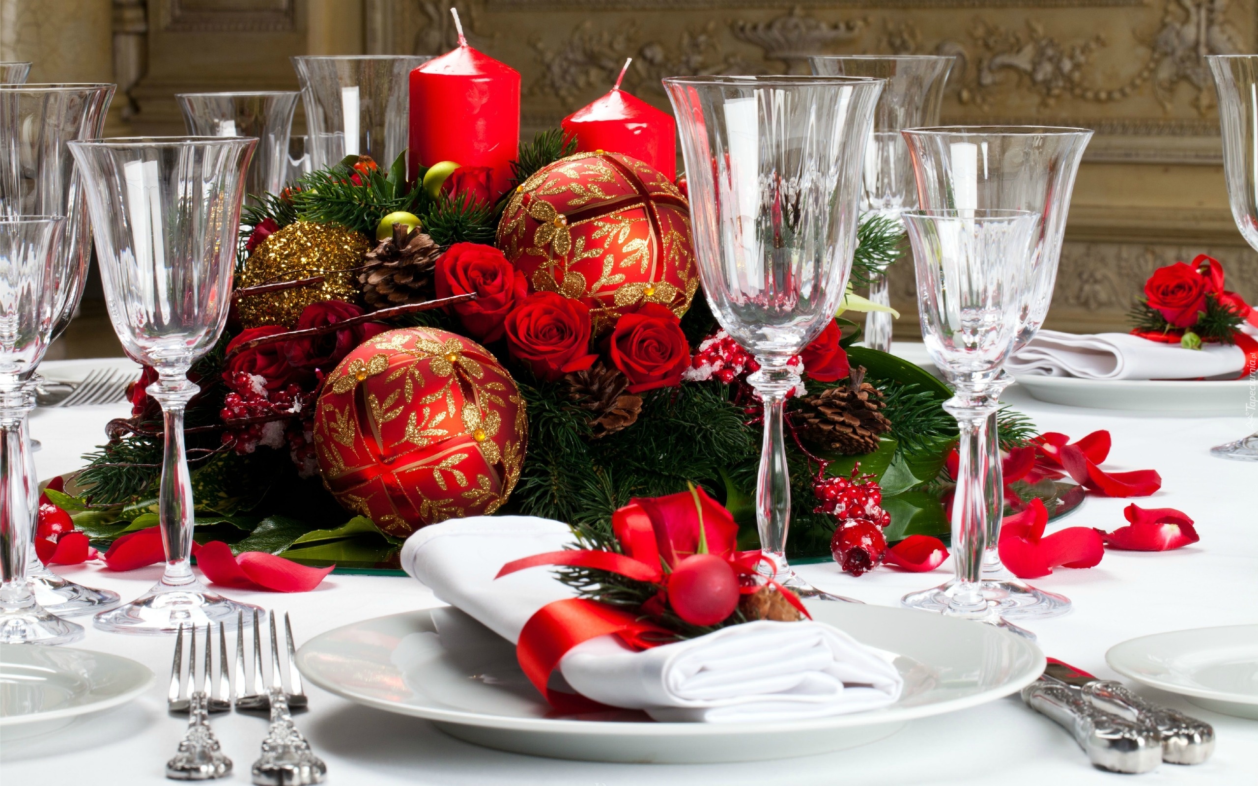 Edytor tapety: Świąteczna, Zastawa, Stroik, Świece, Kieliszki