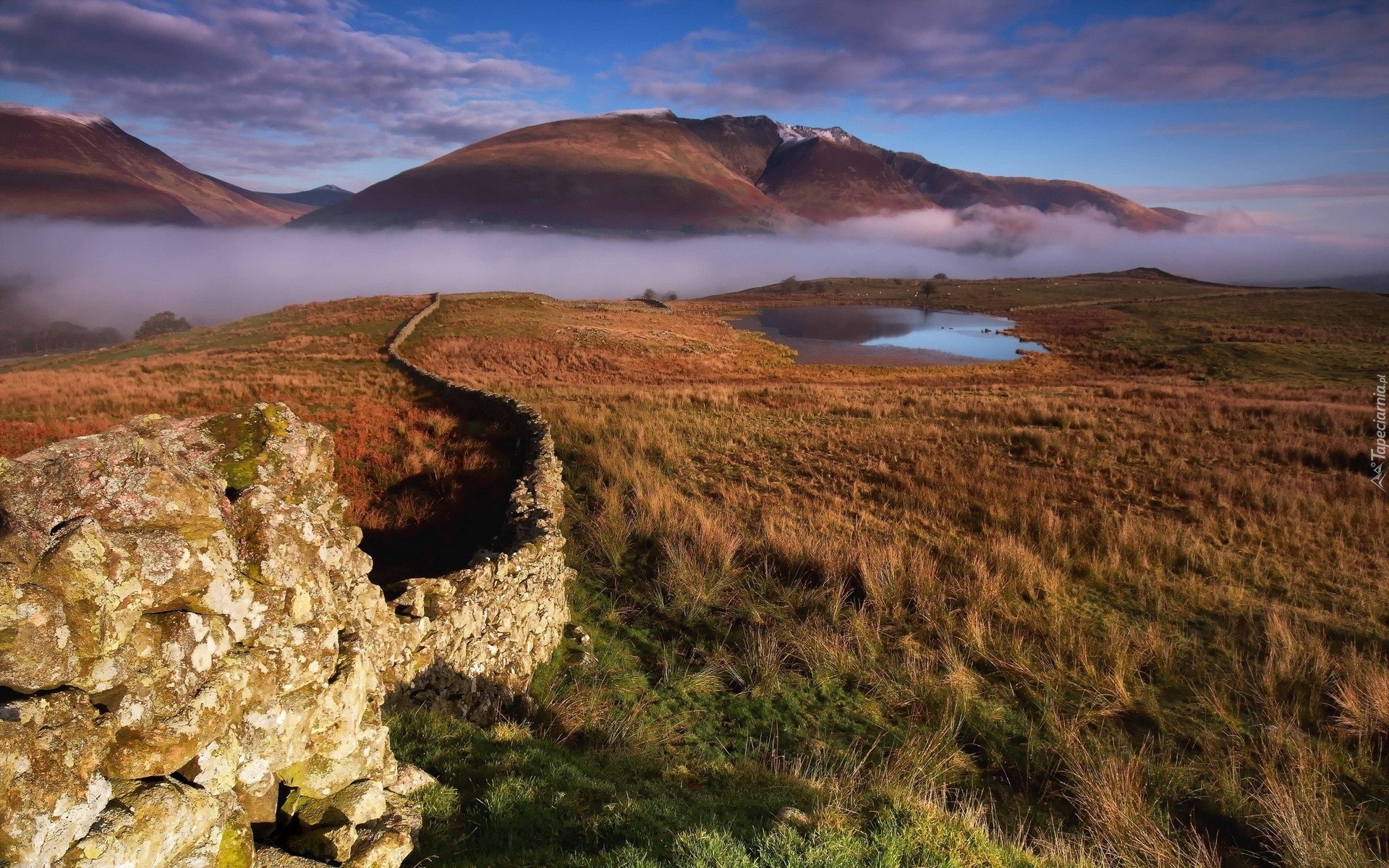 Edytor tapety: Murek, Kamienie, Pola, Mgła, Góry