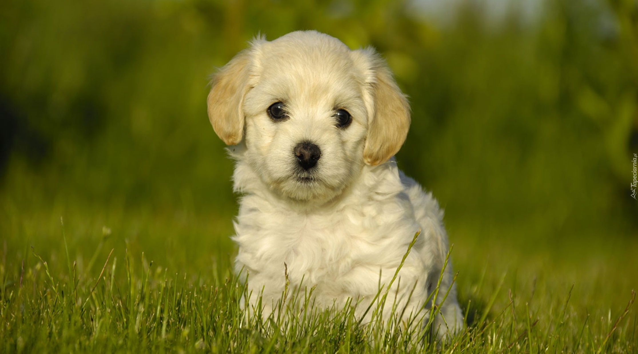 Edytor tapety: Pies, Szczeniak, Oczy, Trawa