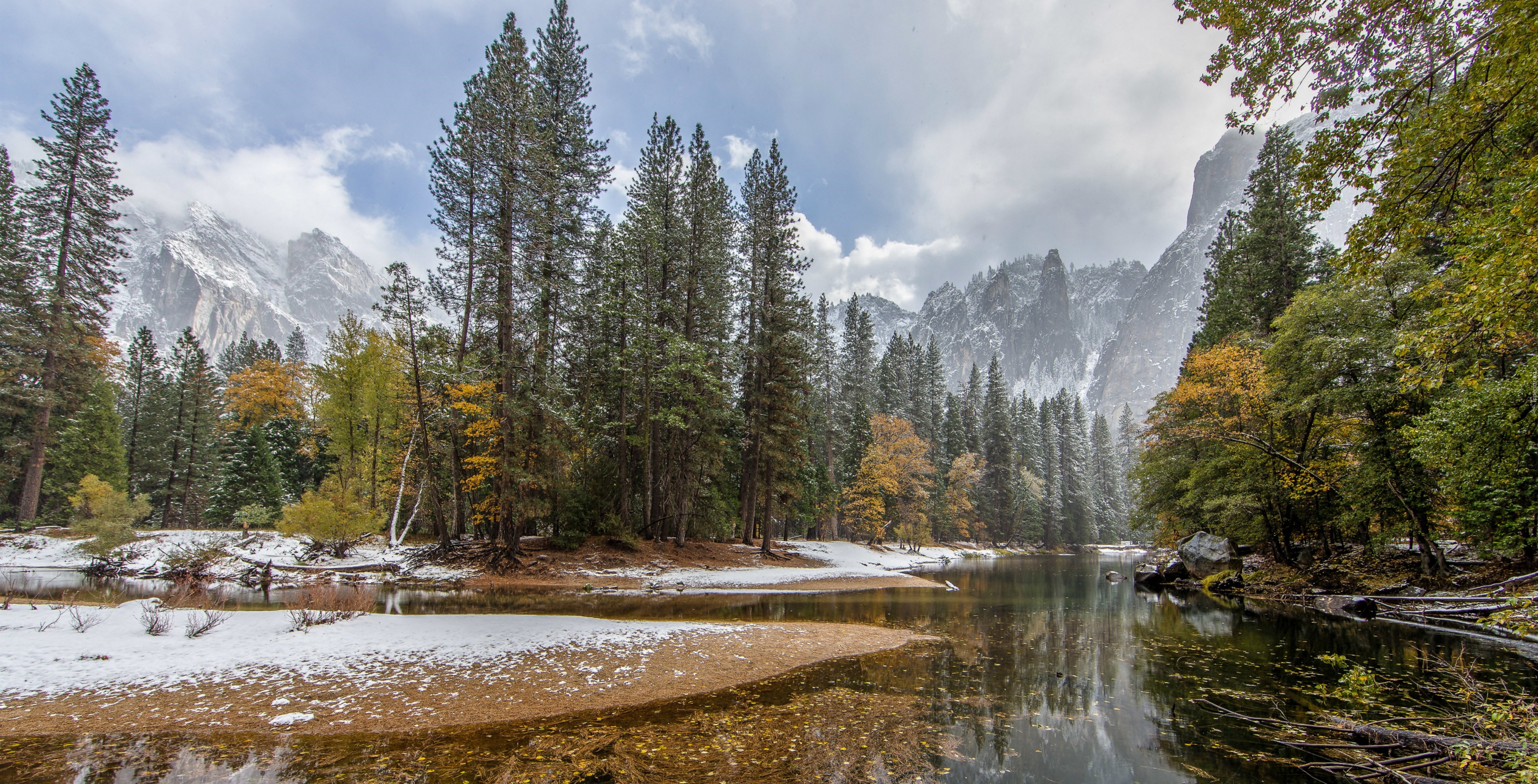 Edytor tapety: Góry, Las, Zima, Rzeka