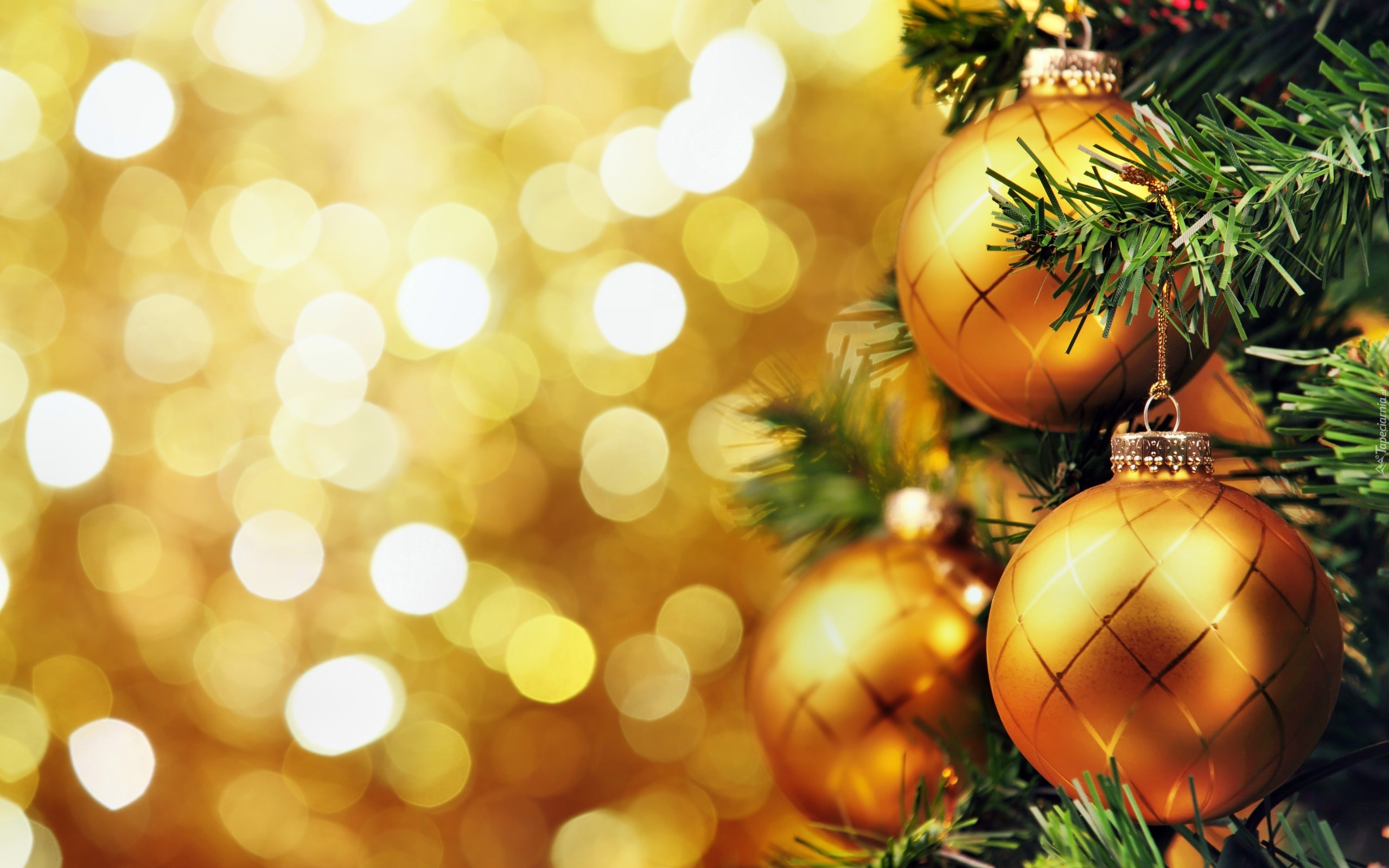 Edytor tapety: Złote, Bombki, Choinka, Święta