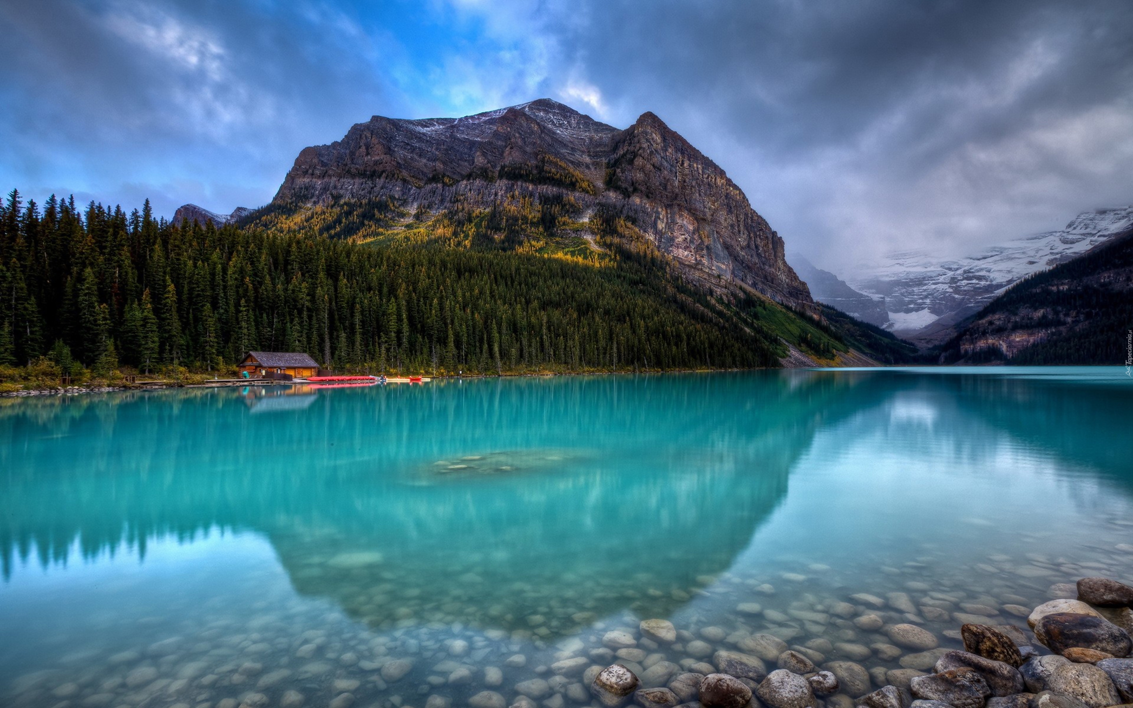 Edytor tapety: Jezioro, Góry, Las, Kamienie