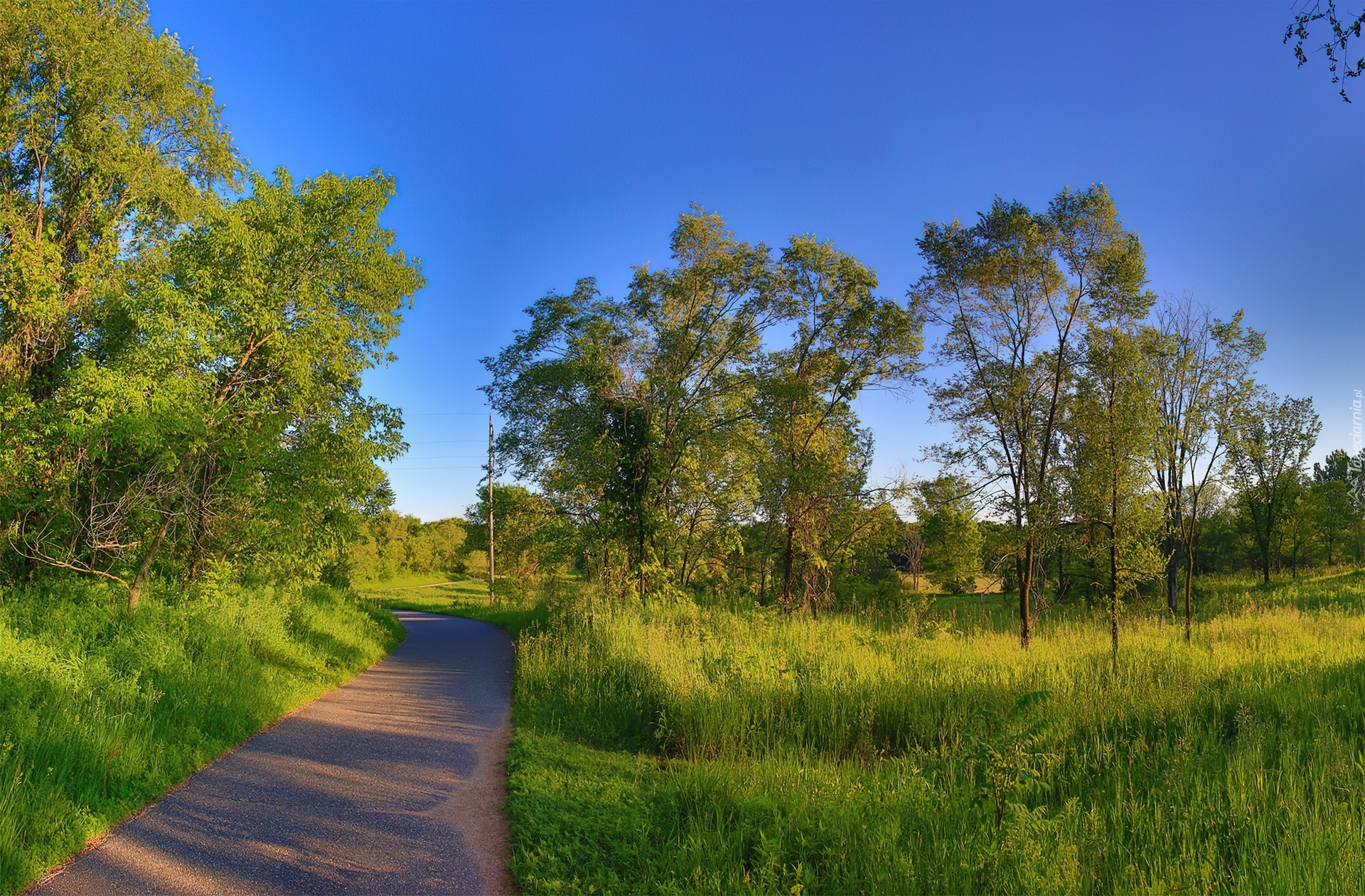Edytor tapety: Droga, Pola, Drzewa, Trawy