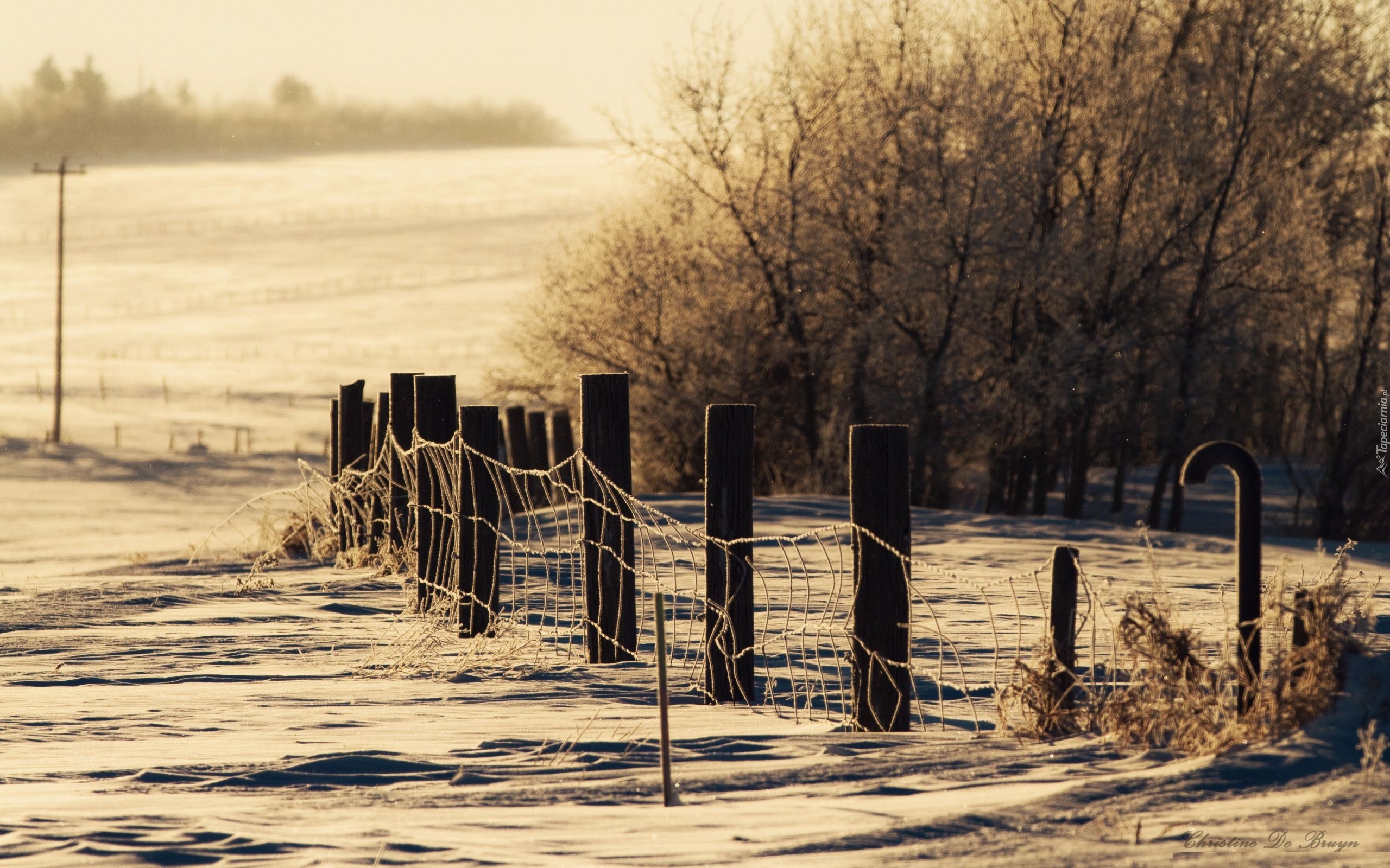 Edytor tapety: Zimowe, Pola, Drzewa, Słupki