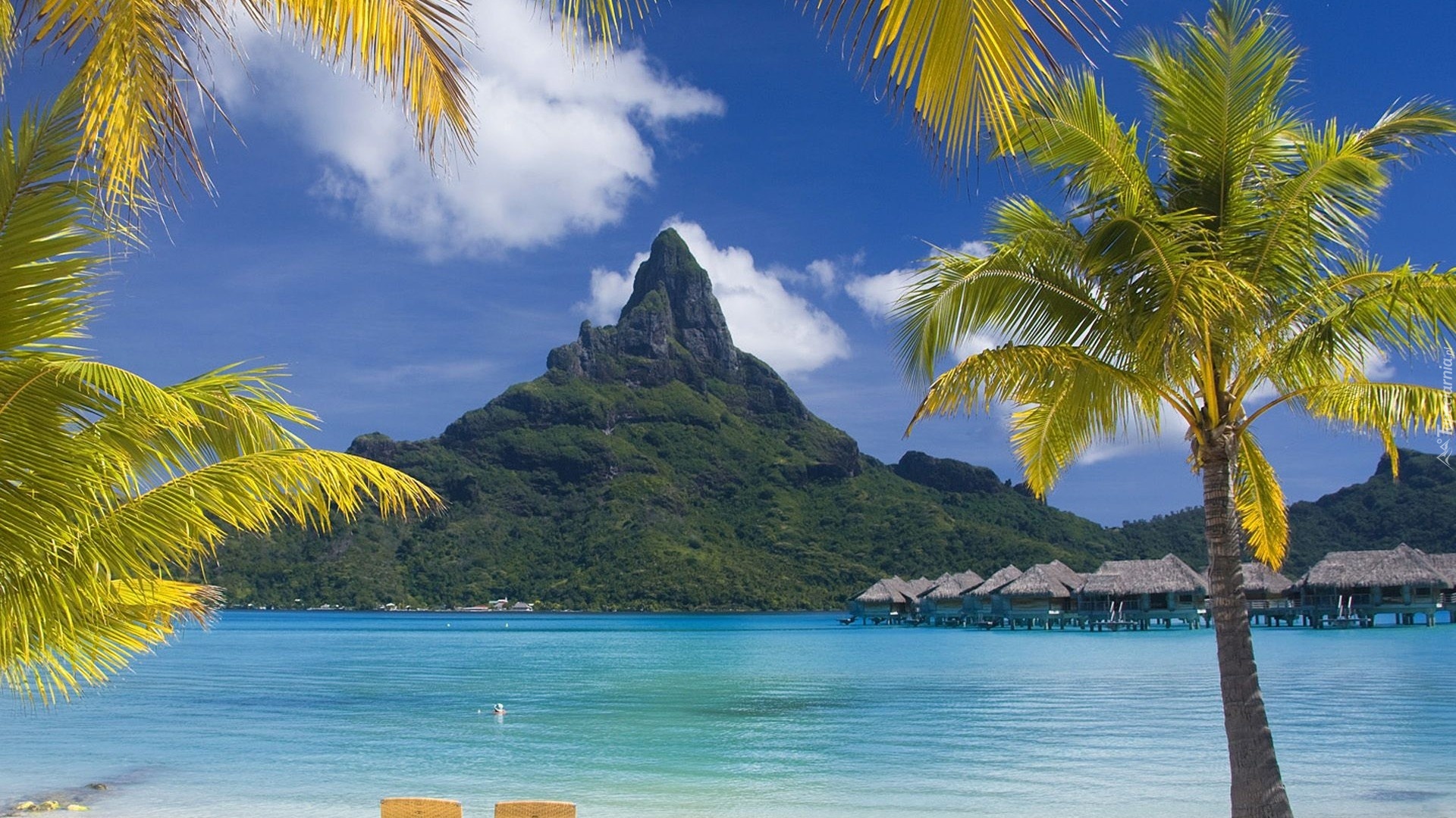 Edytor tapety: Góra, Morze, Palmy, Bora Bora