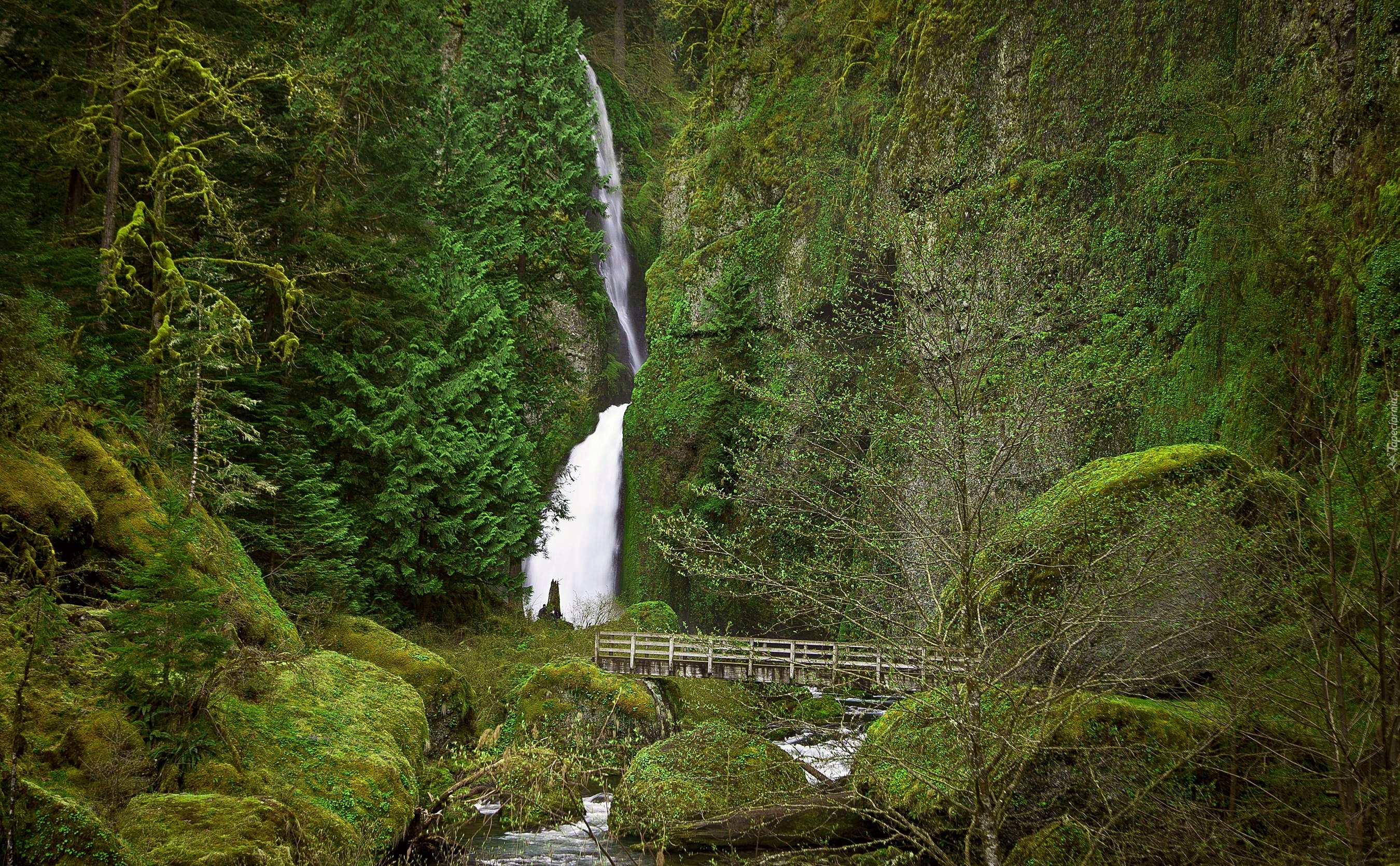 Edytor tapety: Góry, Las, Wodospad, Rzeczka, Most