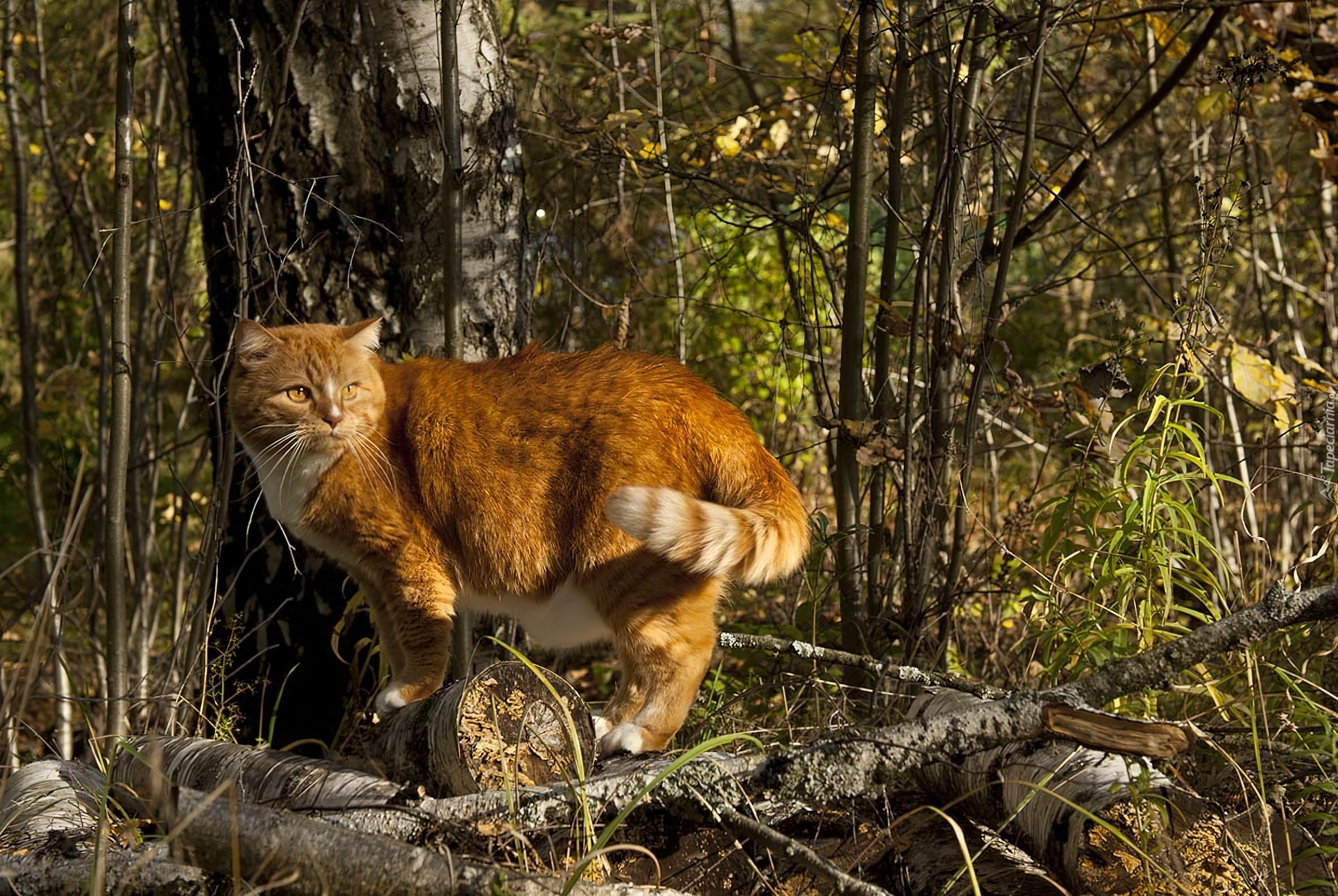 Edytor tapety: Rudy, Kot, Las, Grube, Gałęzie
