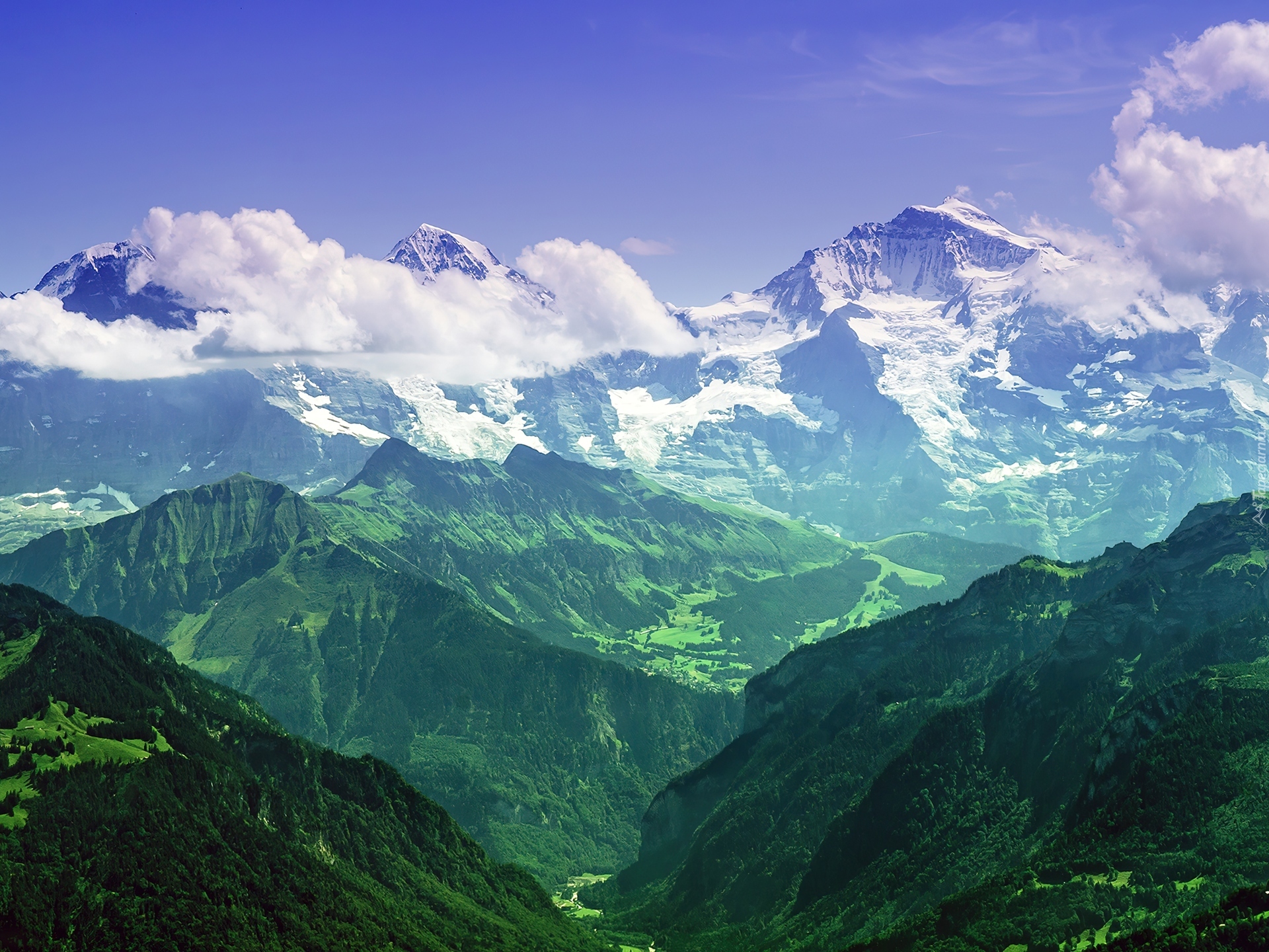 Edytor tapety: Góry, Szczyty, Chmury, Lasy, Doliny