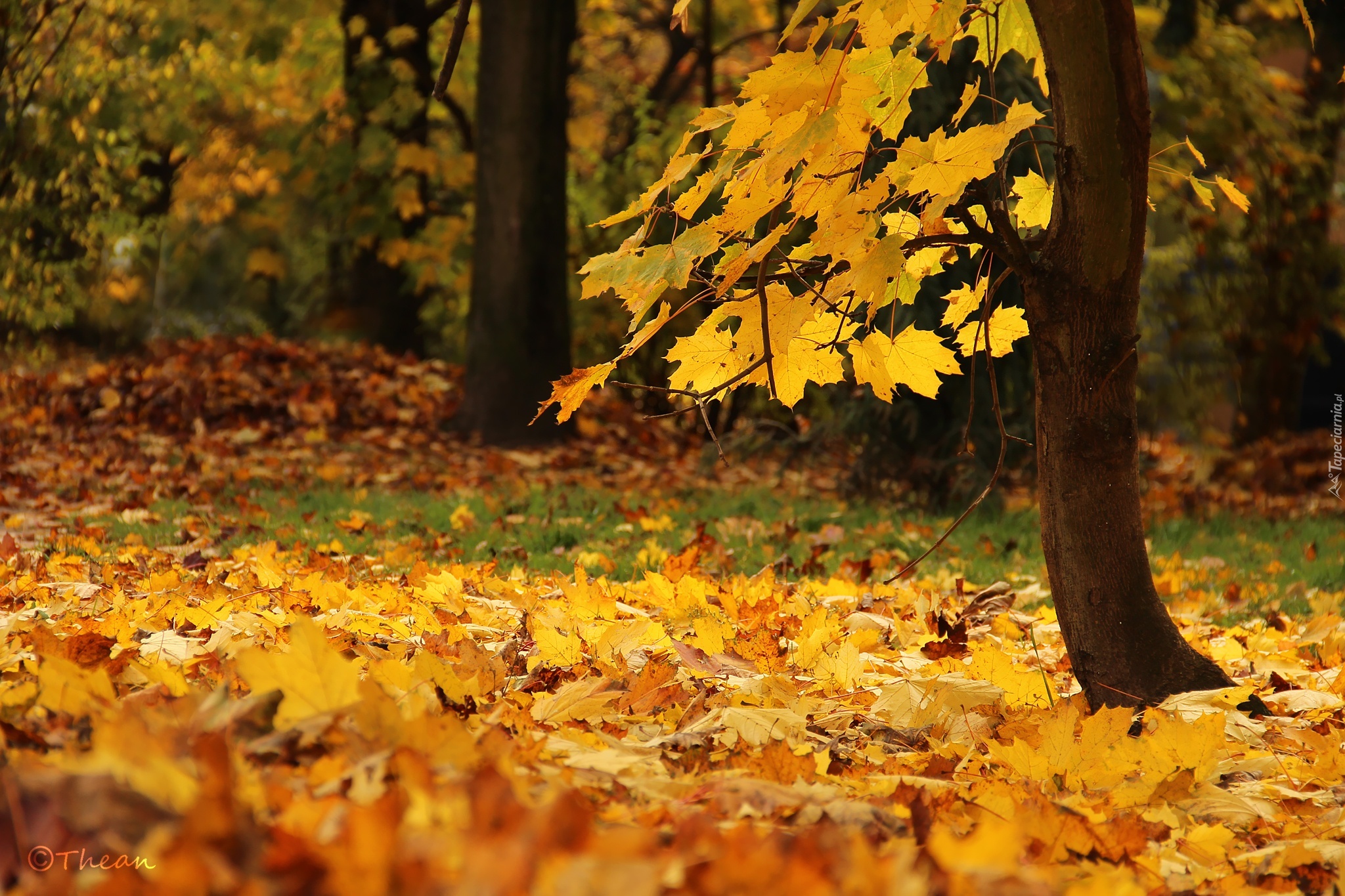 Edytor tapety: Drzewo, Pień, Suche, Jesienne, Liście