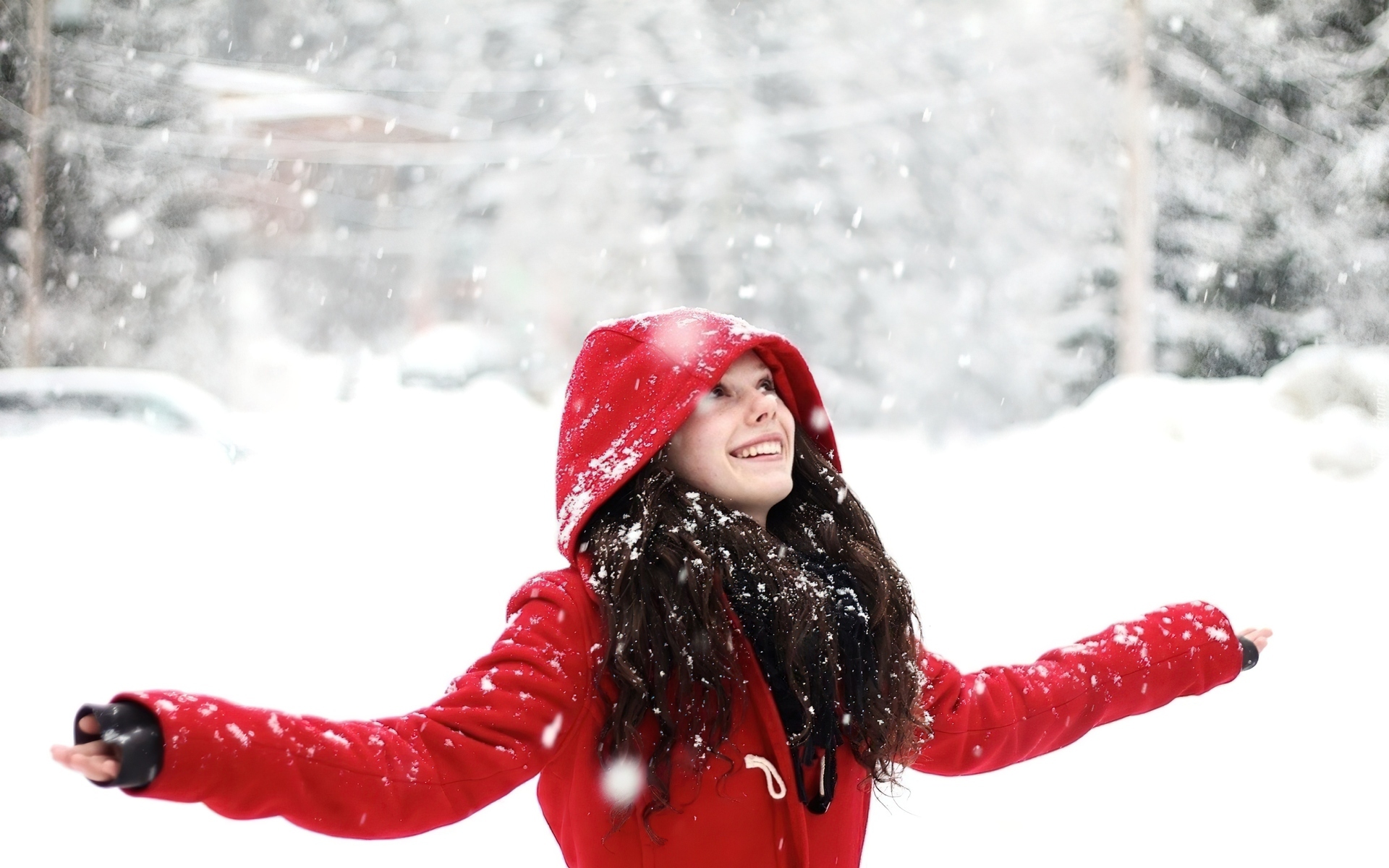 Edytor tapety: Radosna, Brunetka, Kobieta, Zima, Śnieg