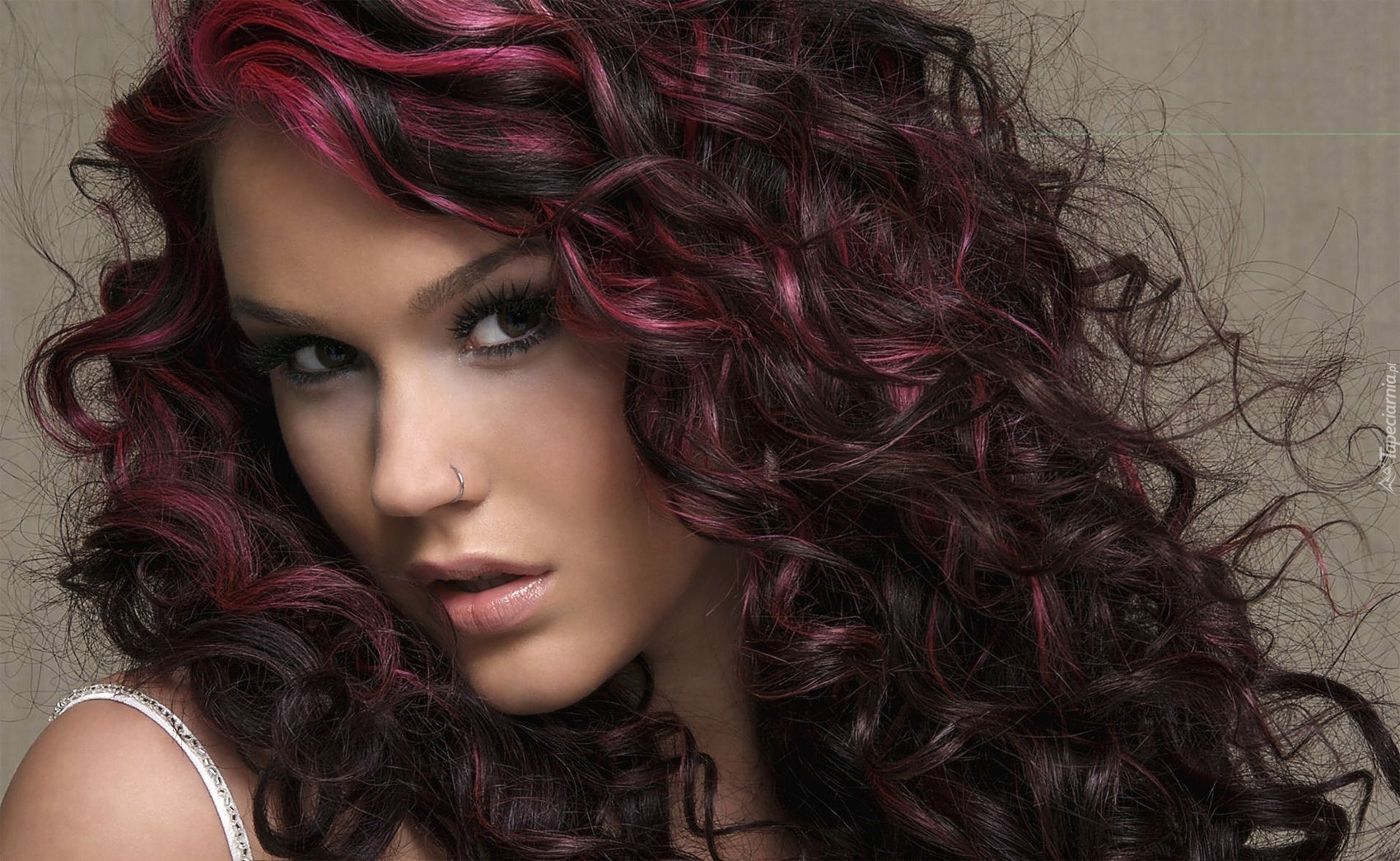 Edytor tapety: Brunetka, Kręcone, Włosy, Kolczyk