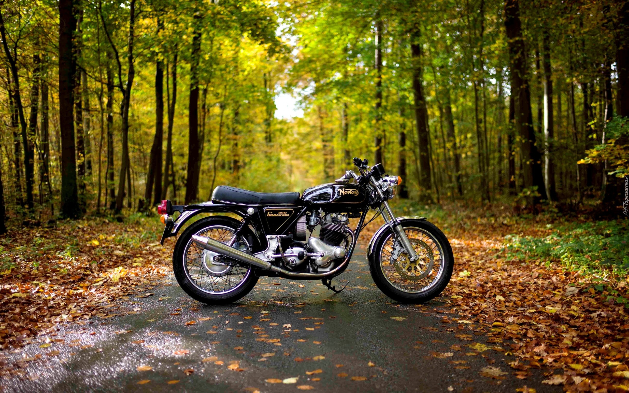 Edytor tapety: Motocykl, Las, Droga, Liście, Jesień