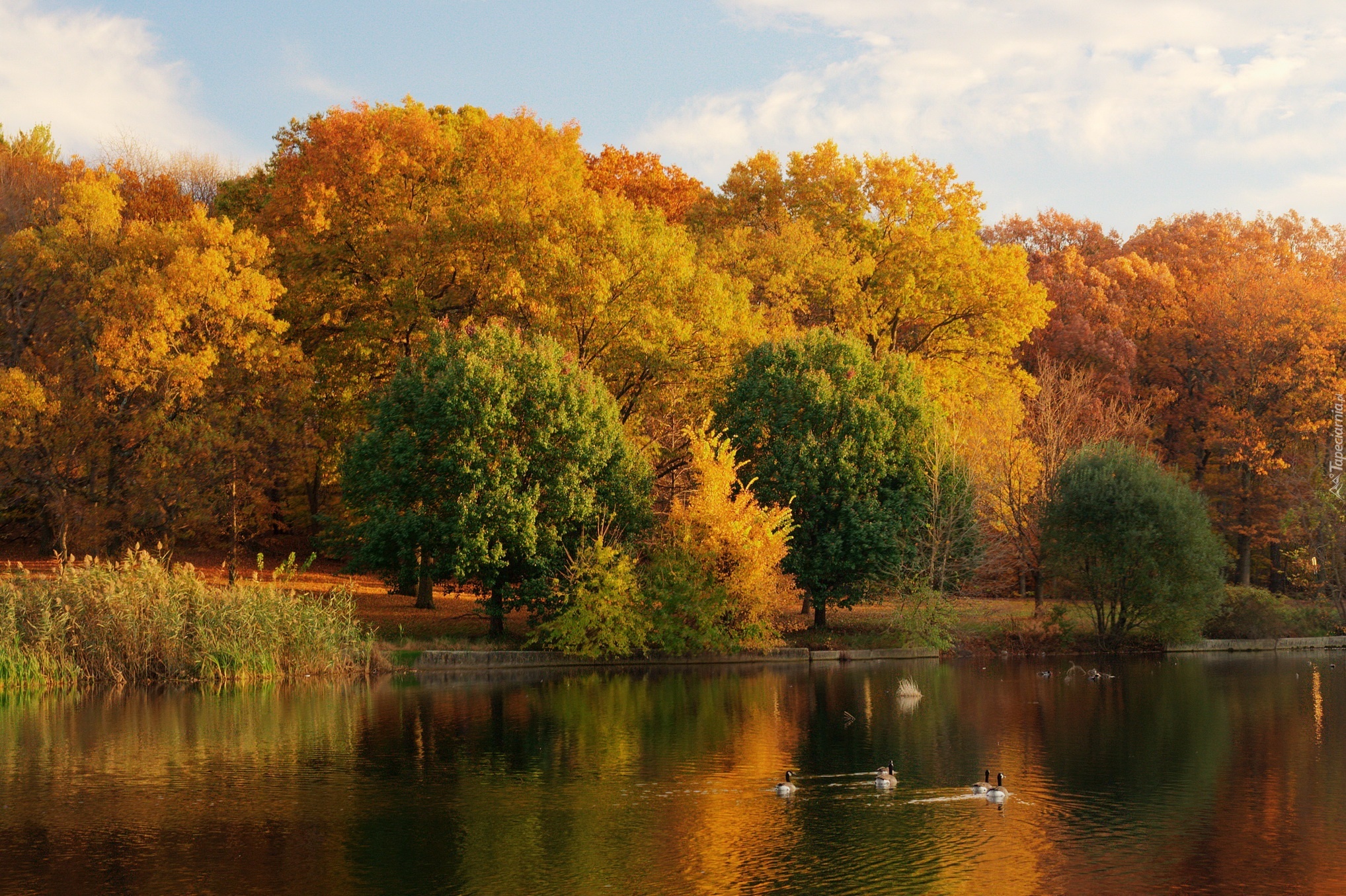 Edytor tapety: Jezioro, Kaczki, Park, Jesień
