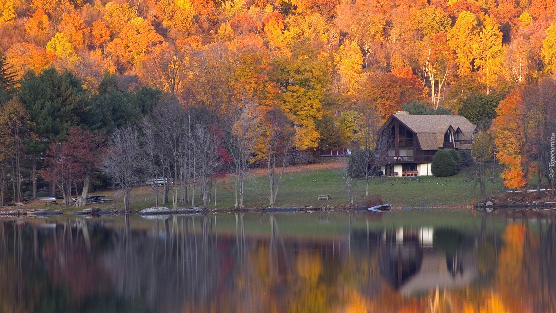 Edytor tapety: Rzeka, Lasy, Dom, Jesień