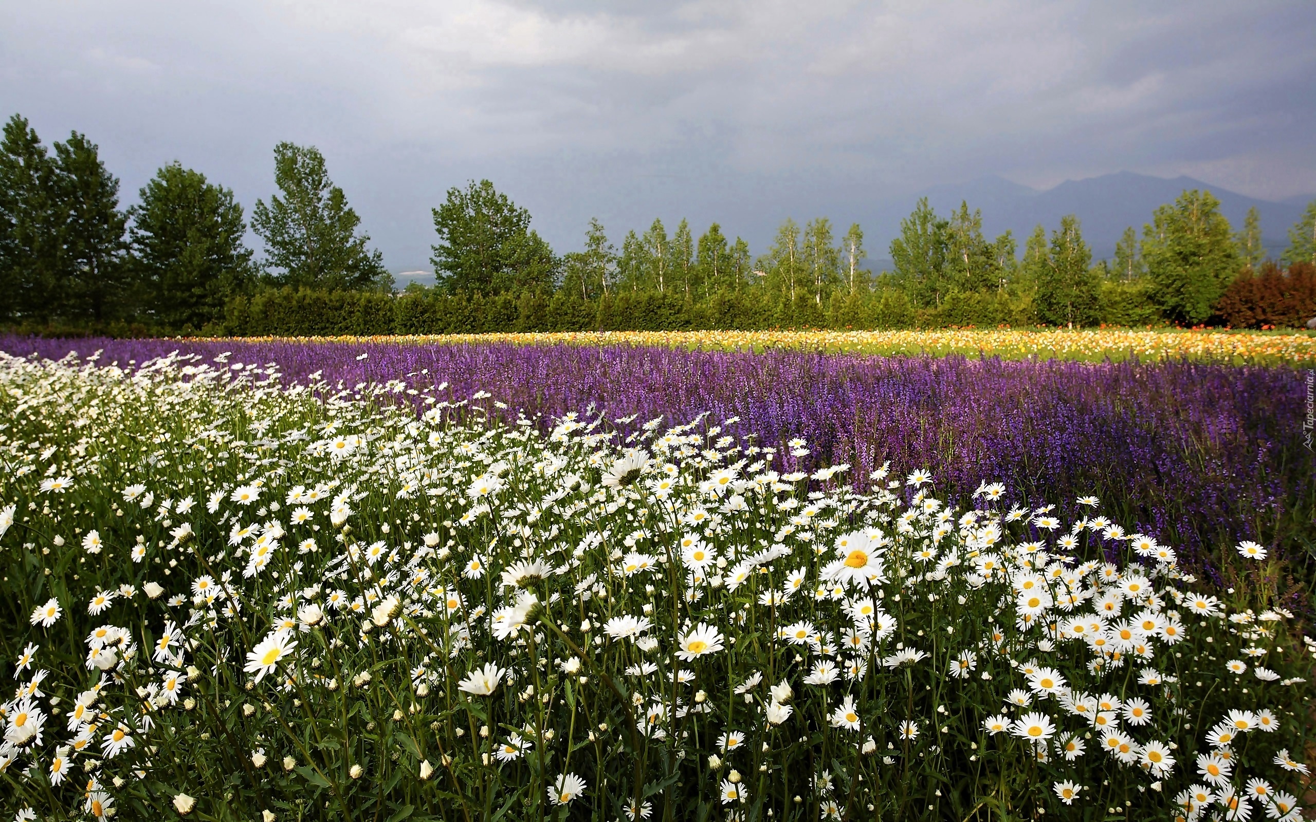 Edytor tapety: Drzewa, Łąka, Maki, Zagon, Lawendy, Rumianku