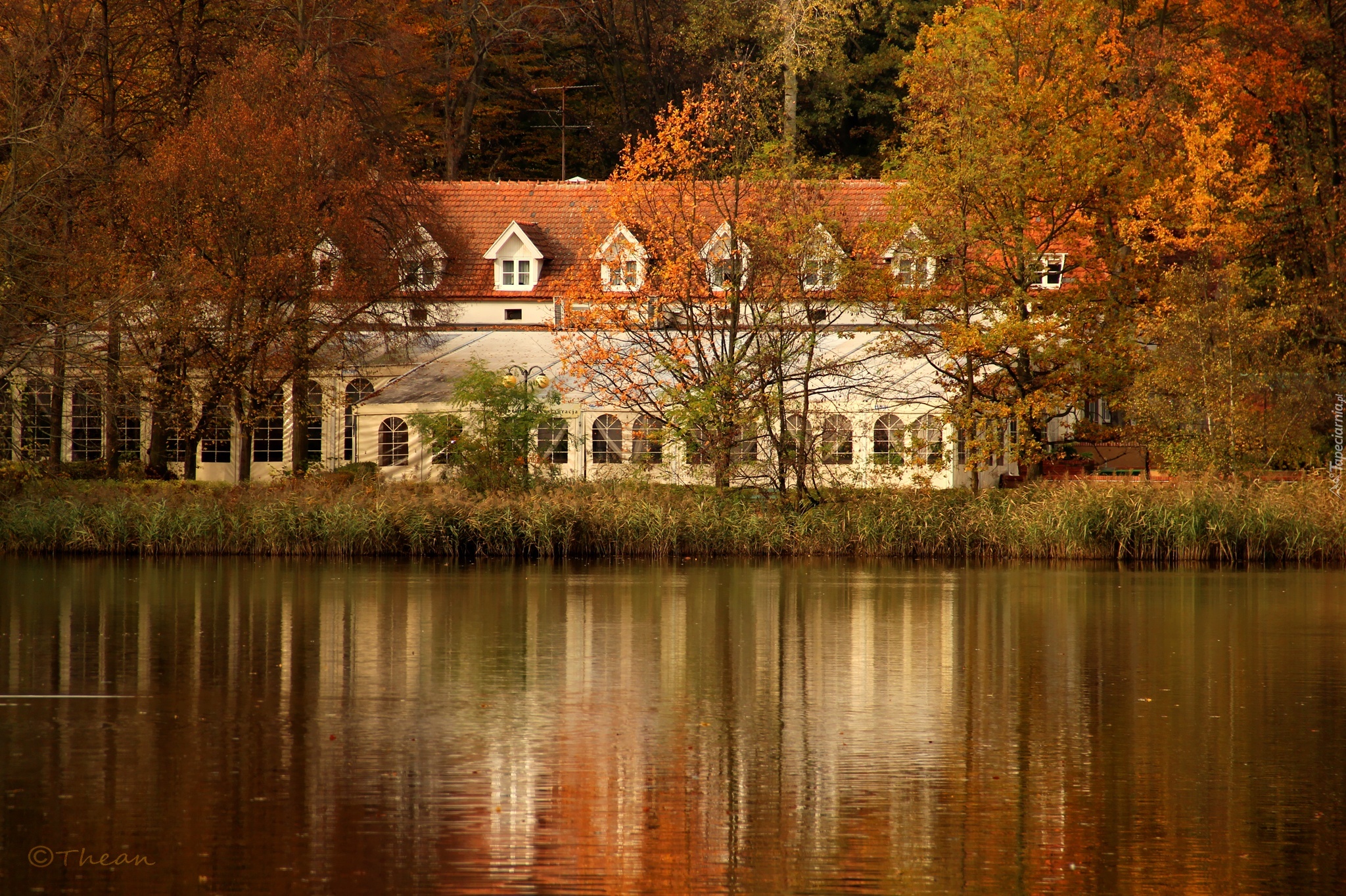 Edytor tapety: Jezioro, Drzewa, Odbicie, Restauracja Meridian, Poznań, Jesień
